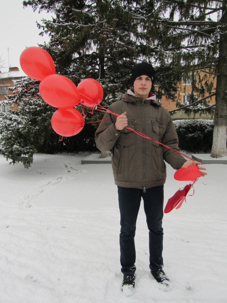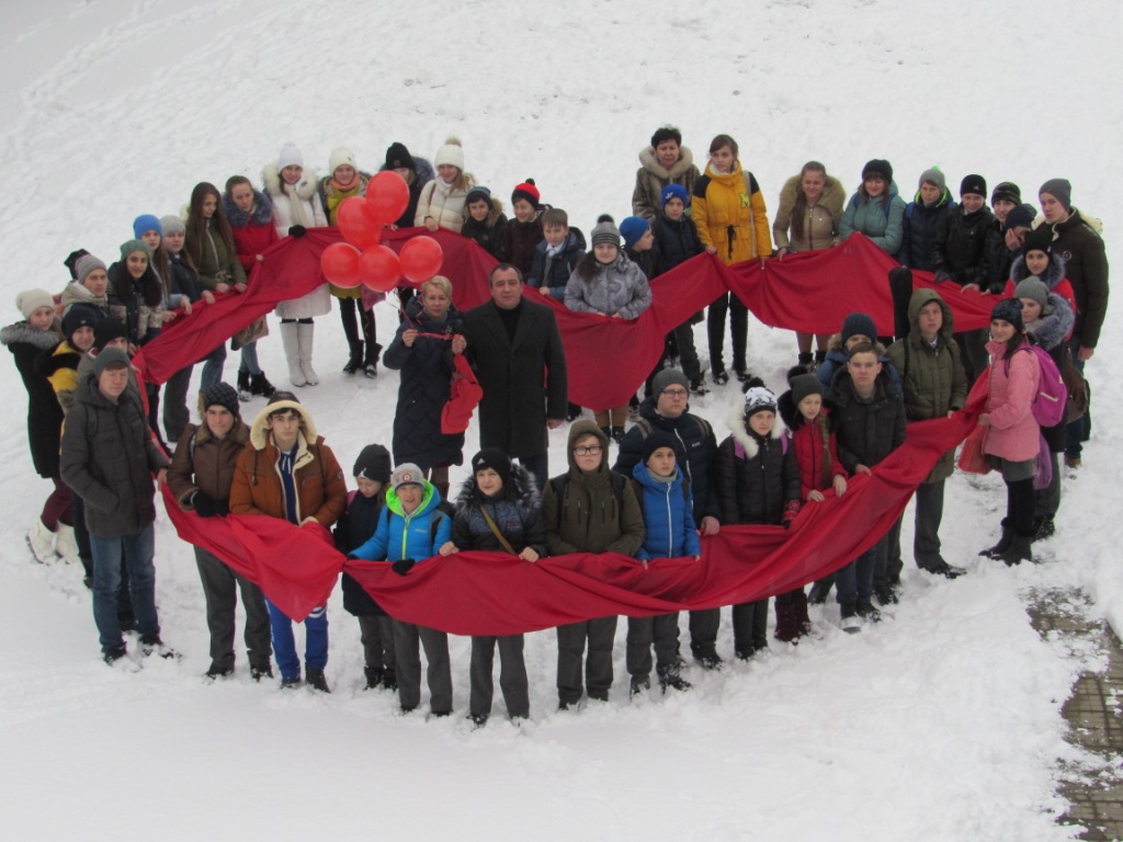 Ровно в 15-00ч. участники акции, выстроившись в форме сердца, взяли в руки красную ткань и со словами «Мы вместе» выпустили в небо красные шары с пожеланиями здоровья и долгих лет жизни.