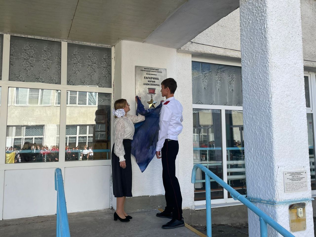 начальник отдела воспитательной работы, дошкольного и дополнительного образования управления образования администрации муниципального образования Новокубанский район Нина Владимировна Богарсукова, руководители школ, заместитель главы администрации Бесскорбненского сельского поселения Фатима Хизировна Шумафова , председатель Совета депутатов Бесскорбненского сельского поселения Сергей Анатольевич Жидков, участница встречи с Ю.А.Гагариным, представитель Совета ветеранов Богдашкина Людмила Савельевна.