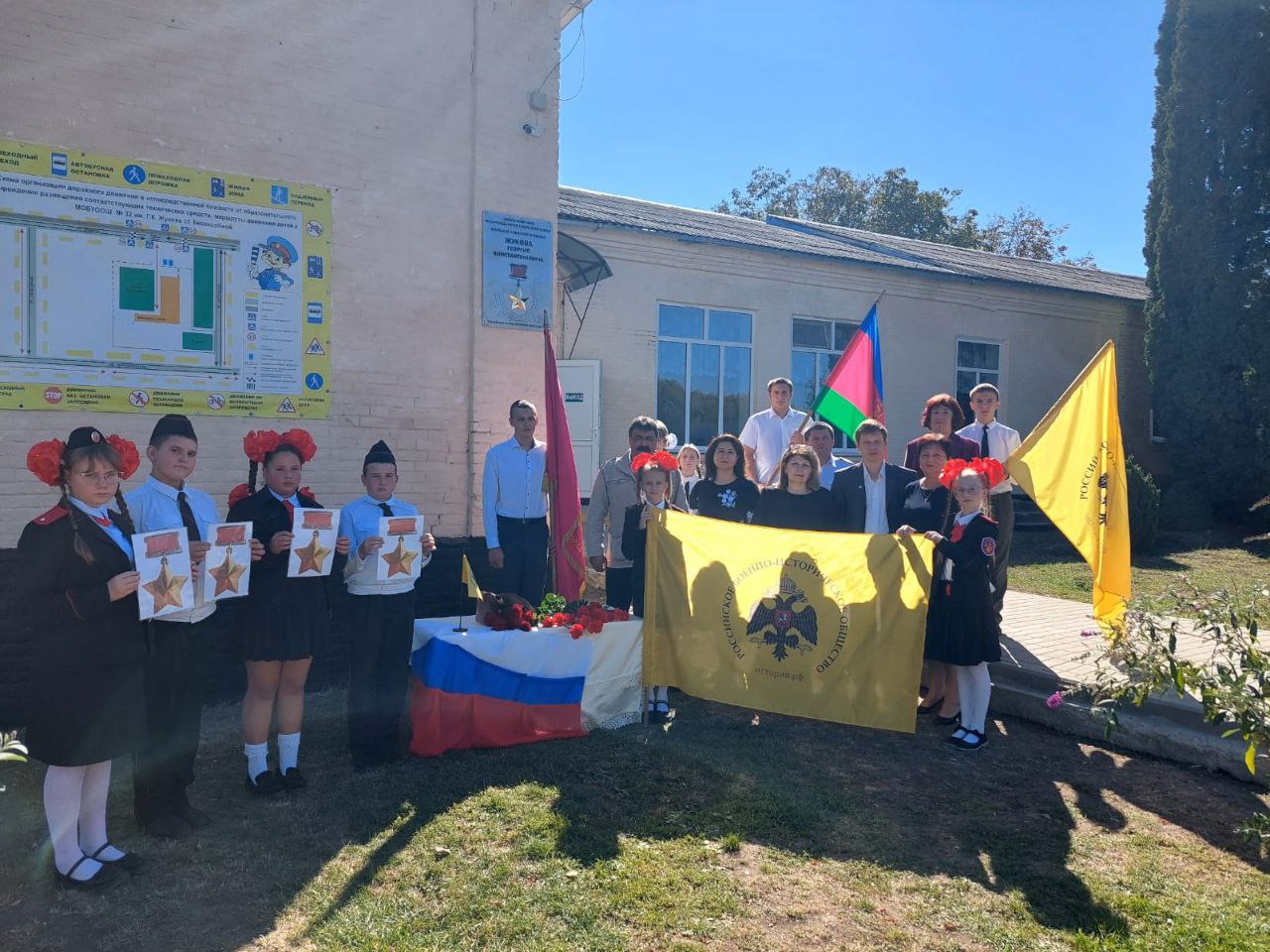 По инициативе Краснодарского регионального отделения Российского военно-исторического общества 07 октября 2024 года состоялось торжественное открытие Памятных досок Героев, чьи имена носят общеобразовательные организации Новокубанского района: МОАУООШ № 28 им. А.М.Матросова г.Новокубанска; МОБУСОШ № 11 им. Ю.А.Гагарина станицы Бесскорбной; МОБУООШ № 32 им. Г.К.Жукова ст.Бесскорбной. На мероприятии выступил представитель Краснодарского регионального отделения Российского военно-исторического общества Евгений Леонидович Замореев,
