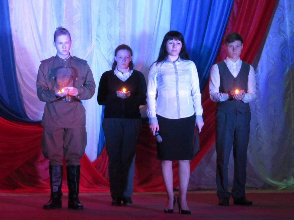 В память обо всех погибших была проведена акция «Согреем сердца ветеранов», во время которой ведущая объявила минуту молчания, участники мероприятия вышли на сцену с зажженными свечами.