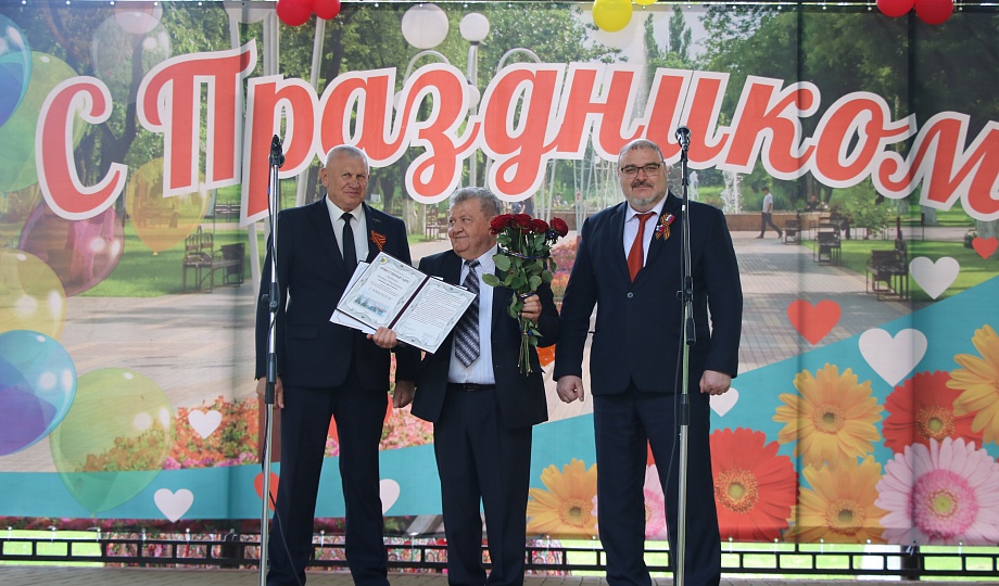 Глава муниципального образования Новокубанский район Александр Гомодин совместно с председателем Совета муниципального образования Новокубанский район Евгением Шутовым поздравили жителей района теплыми словами.