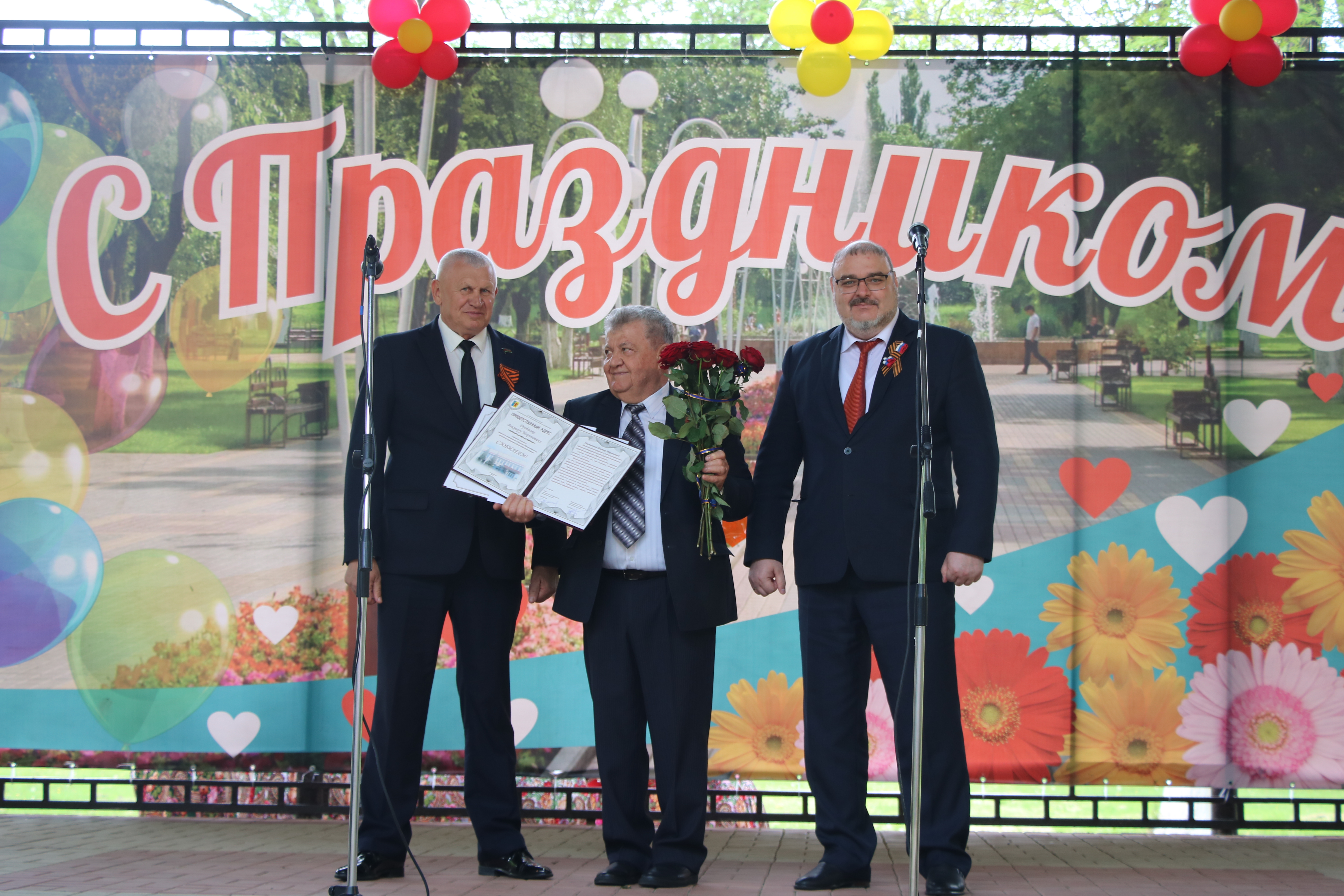 Глава муниципального образования Новокубанский район Александр Гомодин совместно с председателем Совета муниципального образования Новокубанский район Евгением Шутовым поздравили жителей района теплыми словами.