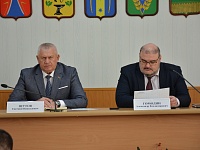 В большом зале администрации муниципального образования Новокубанский район, под председательством главы муниципального образования Новокубанский район Александра Владимировича Гомодина и председателя Совета депутатов муниципального образования Новокубанский район Евгения Николаевича Шутова прошло еженедельное планерное совещание с сотрудниками администрации и руководителями подведомственных учреждений.