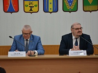 Рабочее утро вторника началось с планерного совещания под председательством главы муниципального образования Новокубанский район Александра Владимировича Гомодина и председателя Совета муниципального образования Новокубанский район Евгения Николаевича Шутова.