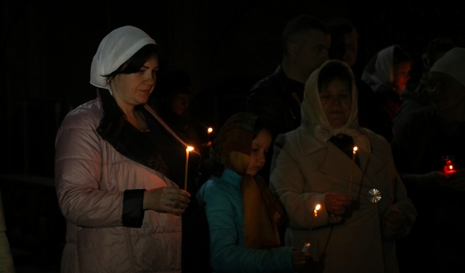 В полночь вокруг храма прошел Крестный ход. В завершении богослужения состоялась торжественная встреча Благодатного огня, который ежегодно возгорается в канун Пасхи в иерусалимском храме Гроба Господня.