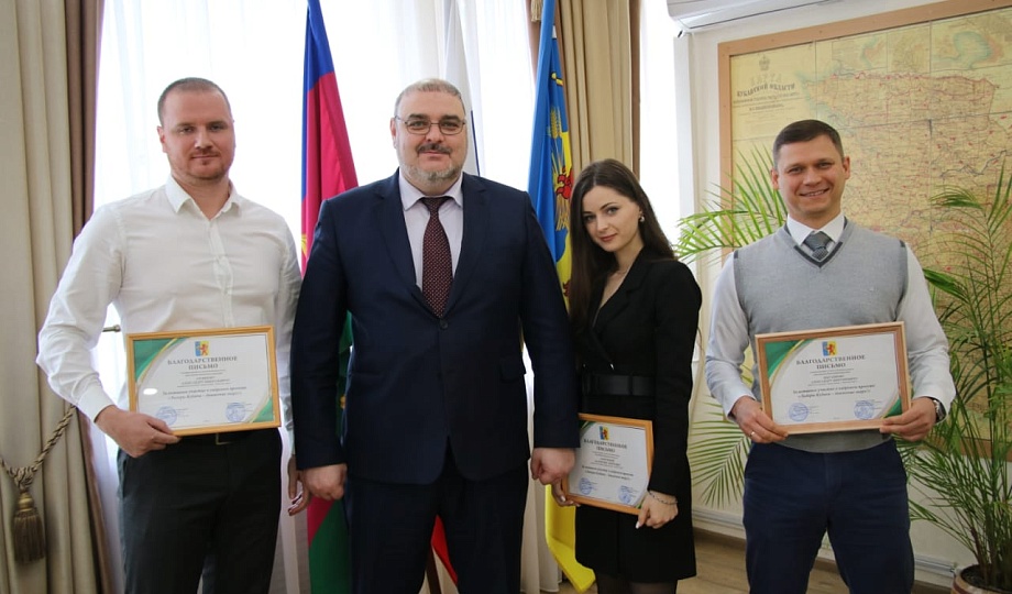 Александр Гомодин встретился с участниками конкурса от Новокубанского района. Руководитель муниципалитета вручил участникам благодарственные письма за активное участие в кадровом проекте «Лидеры Кубани – движение вверх!» и пожелал стремиться к саморазвитию и идти к своим целям.