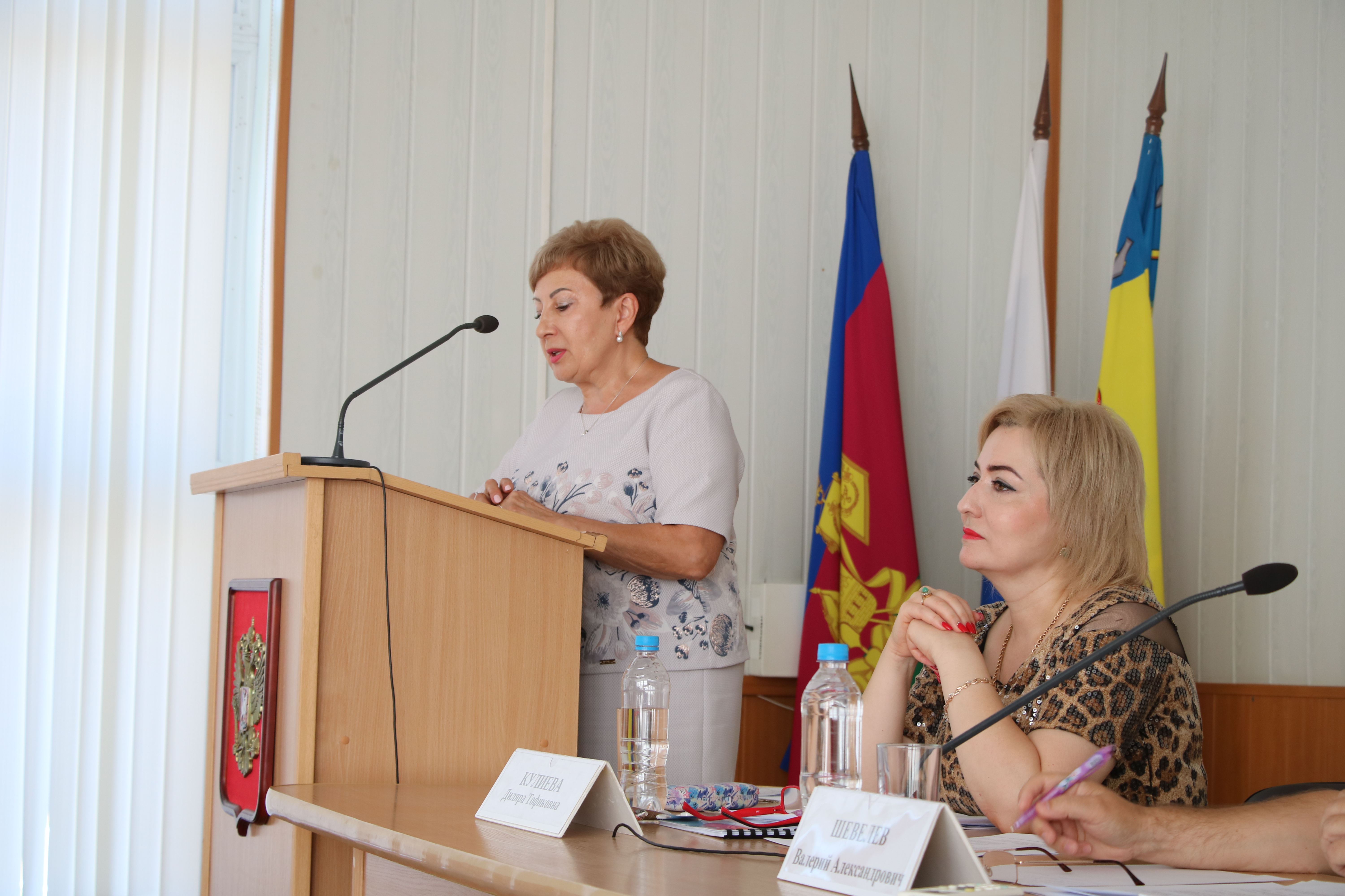 О ключевых стратегиях развития образования в Новокубанском районе в своем докладе подробно рассказала Диляра Тофиковна, подкрепив выступление фотопрезентацией. С 1 сентября в новые отремонтированные кабинеты, за школьные парты сядут 10126 школьников из них 1000 первоклассников, к своей педагогической деятельности приступят 1205 педагогов. За последние три года в педагогическую семью Новокубанского района влилось 103 педагога. Также речь шла о нововведениях в системе общего образования, финансировании отрасли образования, реализации региональных проектов «Современная школа», «Успех каждого ребенка», «Поддержка семей, имеющих детей», «Учитель будущего», «Цифровая образовательная среда» и национального проекта «Образование», о результатах сдачи ЕГЭ и ОГЭ, организации питания учащихся и преобразованиях в образовательных учреждениях района.