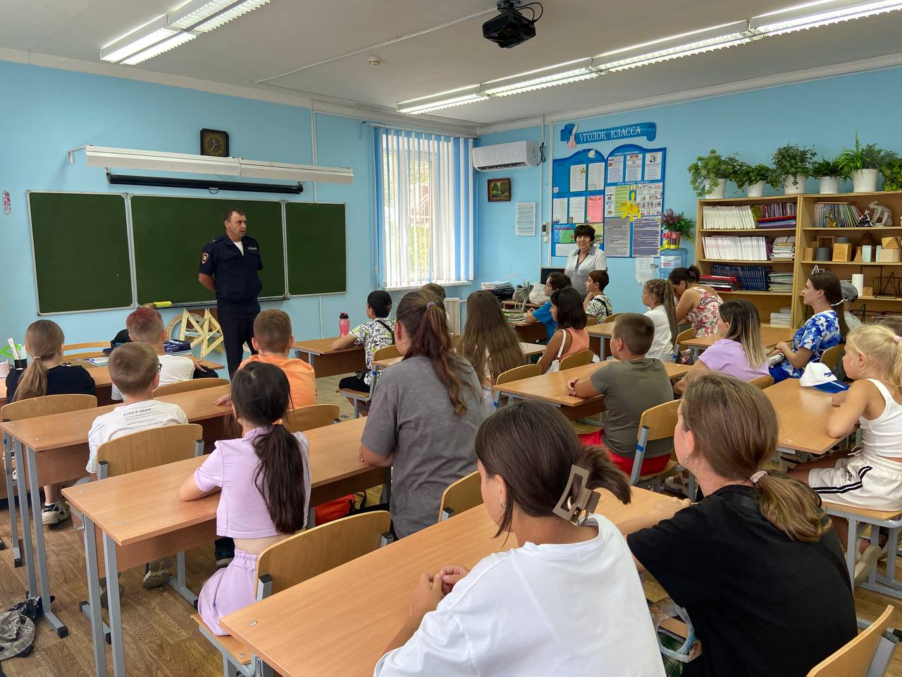 Госавтоинспекторы провели для воспитанников лагеря дневного пребывания в Гимназии Nº2 беседу в рамках профилактического мероприятия