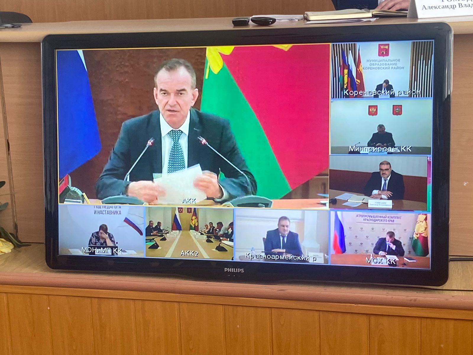 21.09.2023 Глава муниципального образования Новокубанский район принял участие в совещании в режиме видеоконференции, главной целью которого стало обсуждение выполнения поручений Губернатора Краснодарского края ("Час контроля").