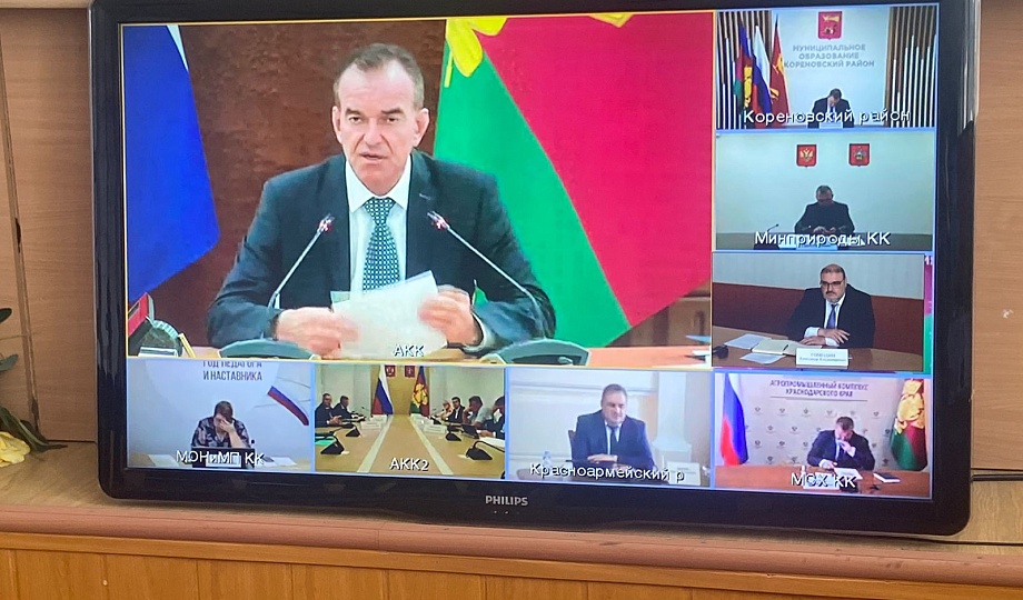 Глава муниципального образования Новокубанский район принял участие в совещании в режиме видеоконференции, главной целью которого стало обсуждение выполнения поручений Губернатора Краснодарского края ("Час контроля").