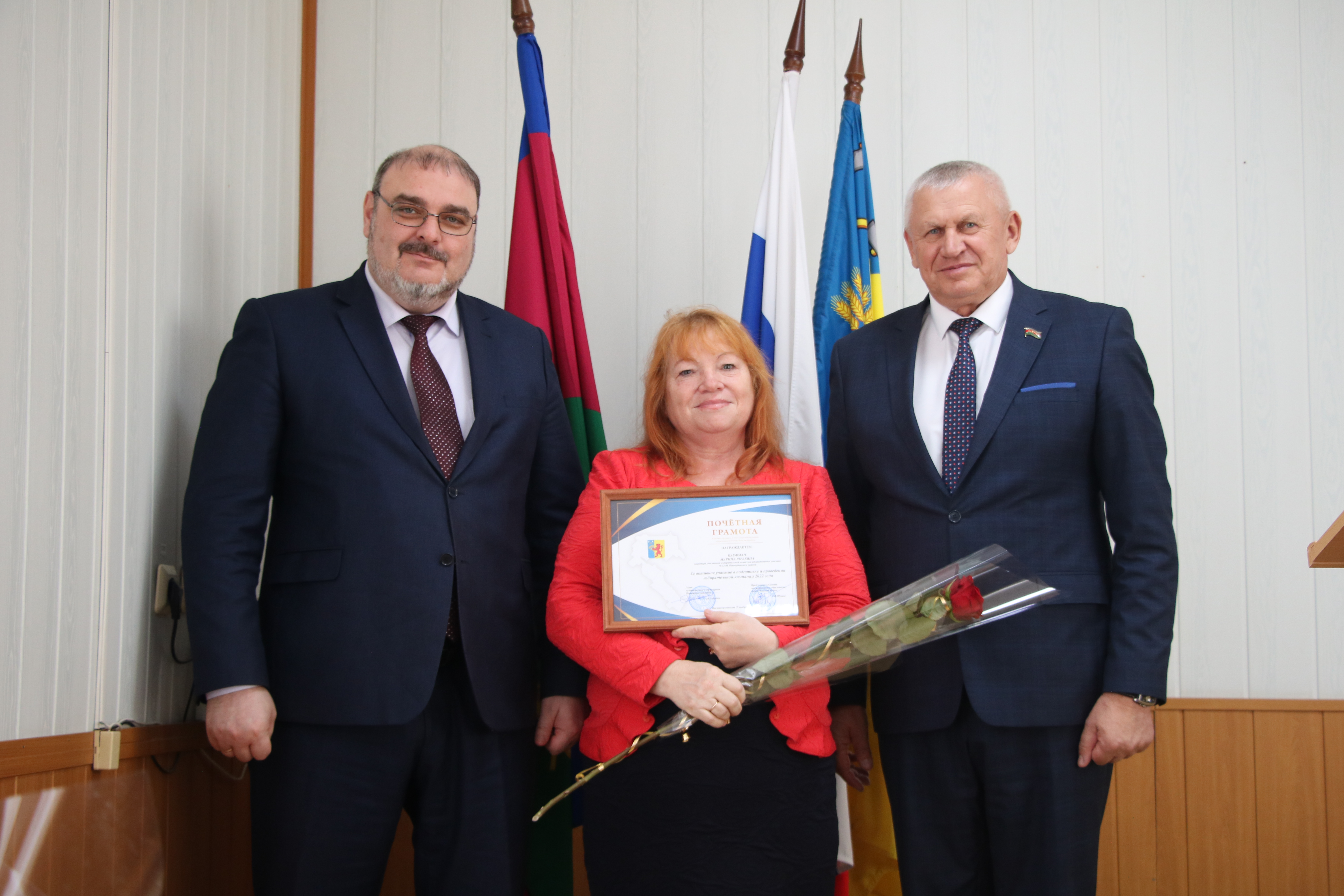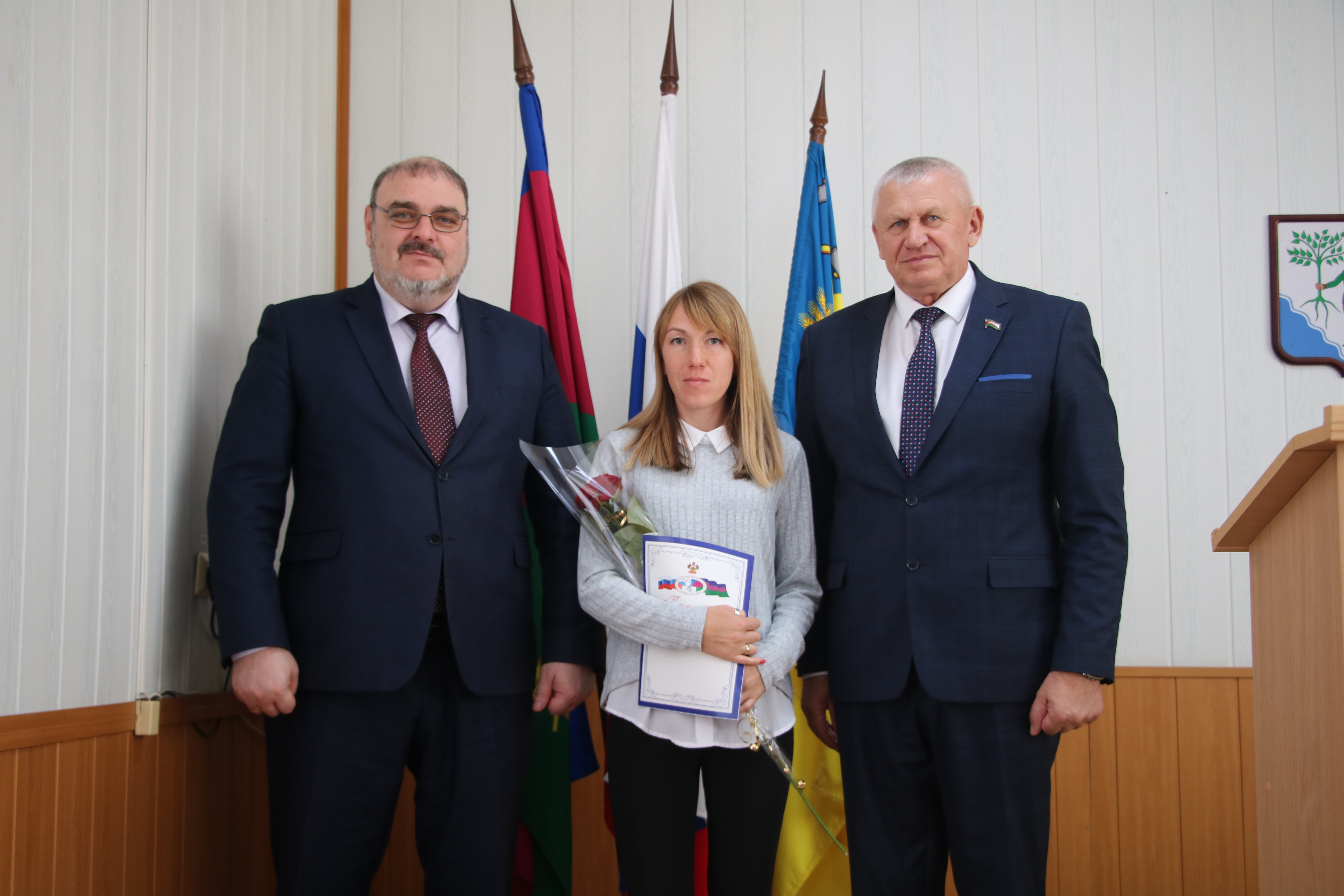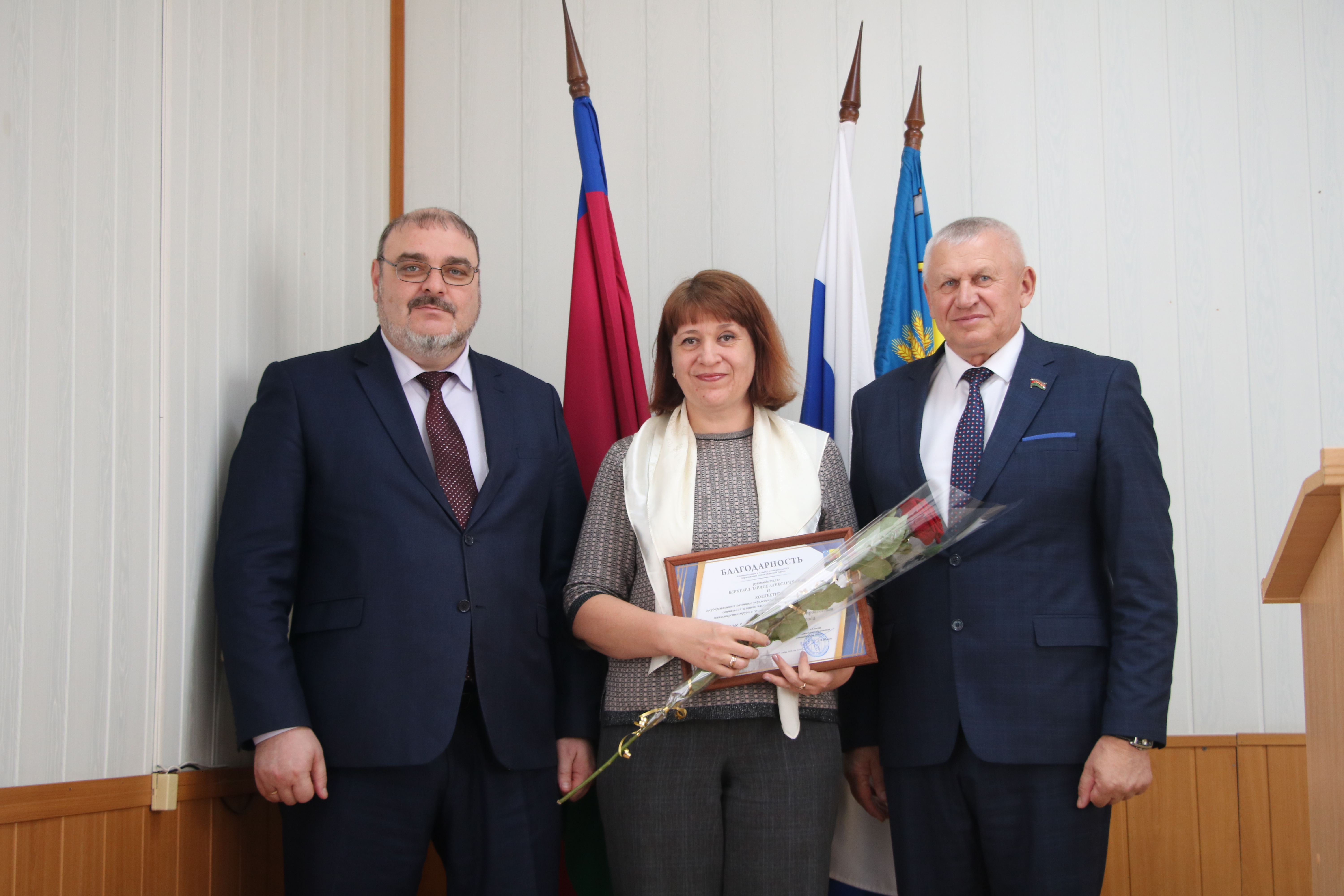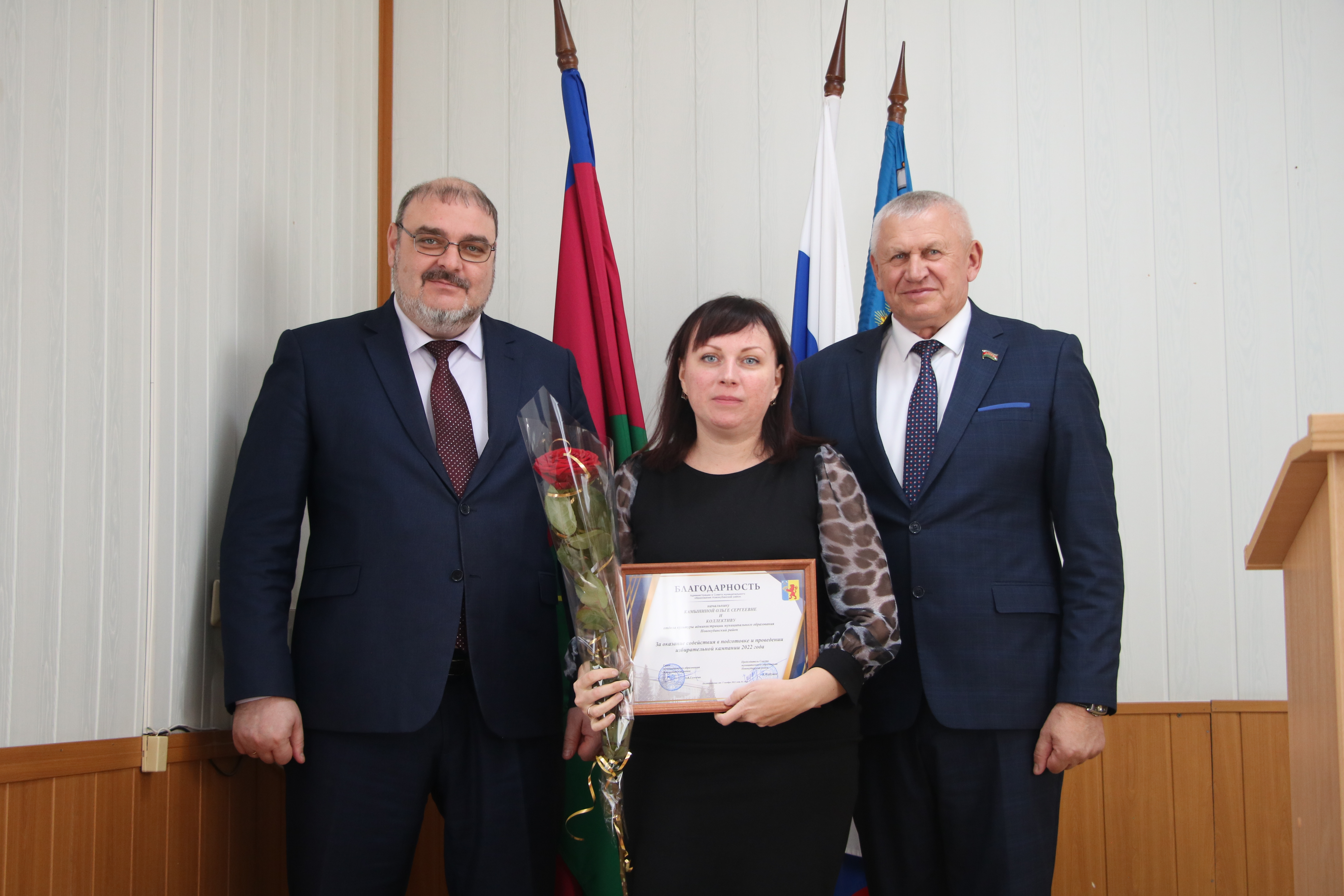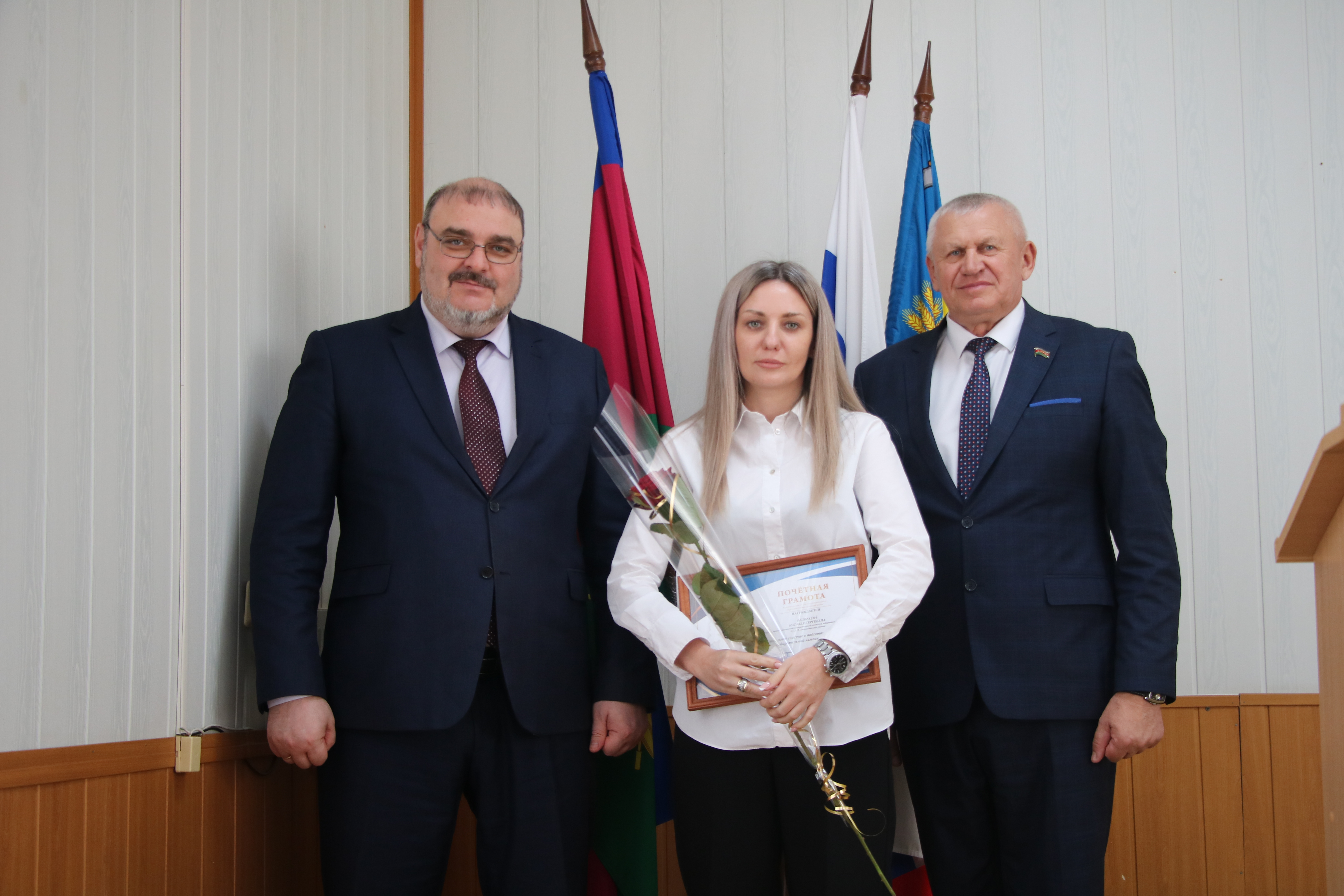 Во второй части мероприятия в администрации муниципального образования Новокубанский район руководитель муниципалитета Александр Гомодин и председатель Совета Евгений Шутов вручили почетные грамоты и благодарственные письма администрации и Совета муниципального образования Новокубанский район отличившимся специалистам.