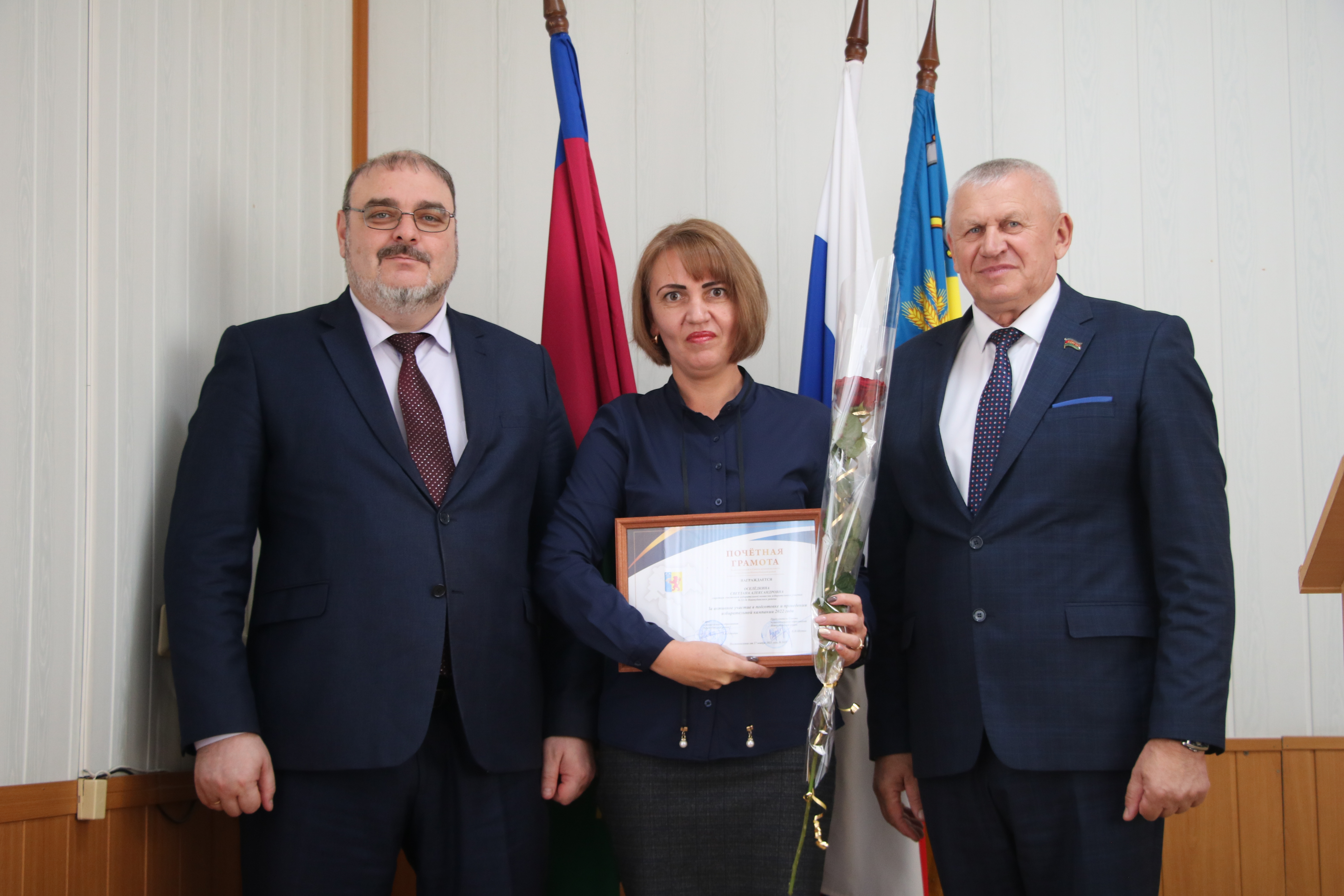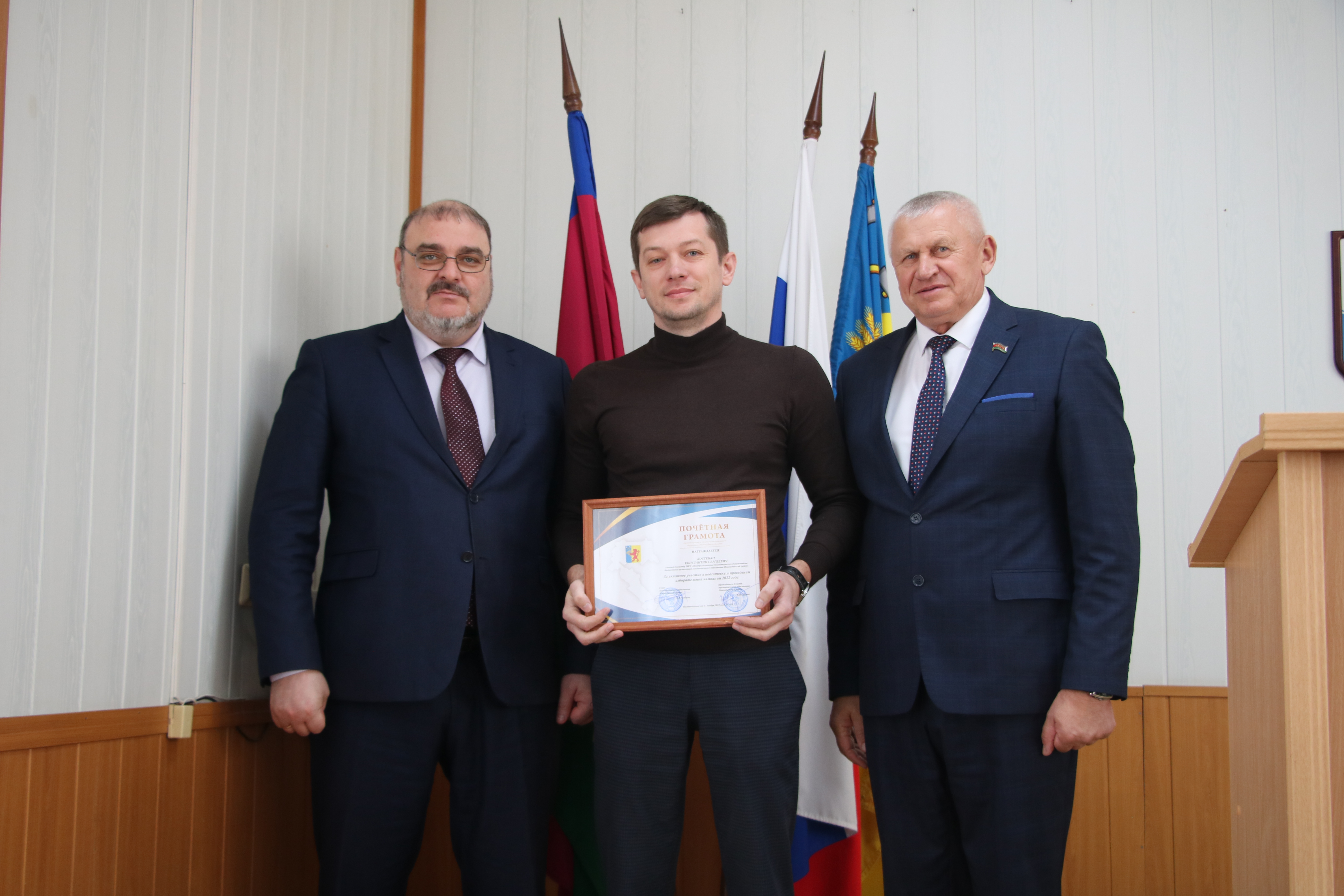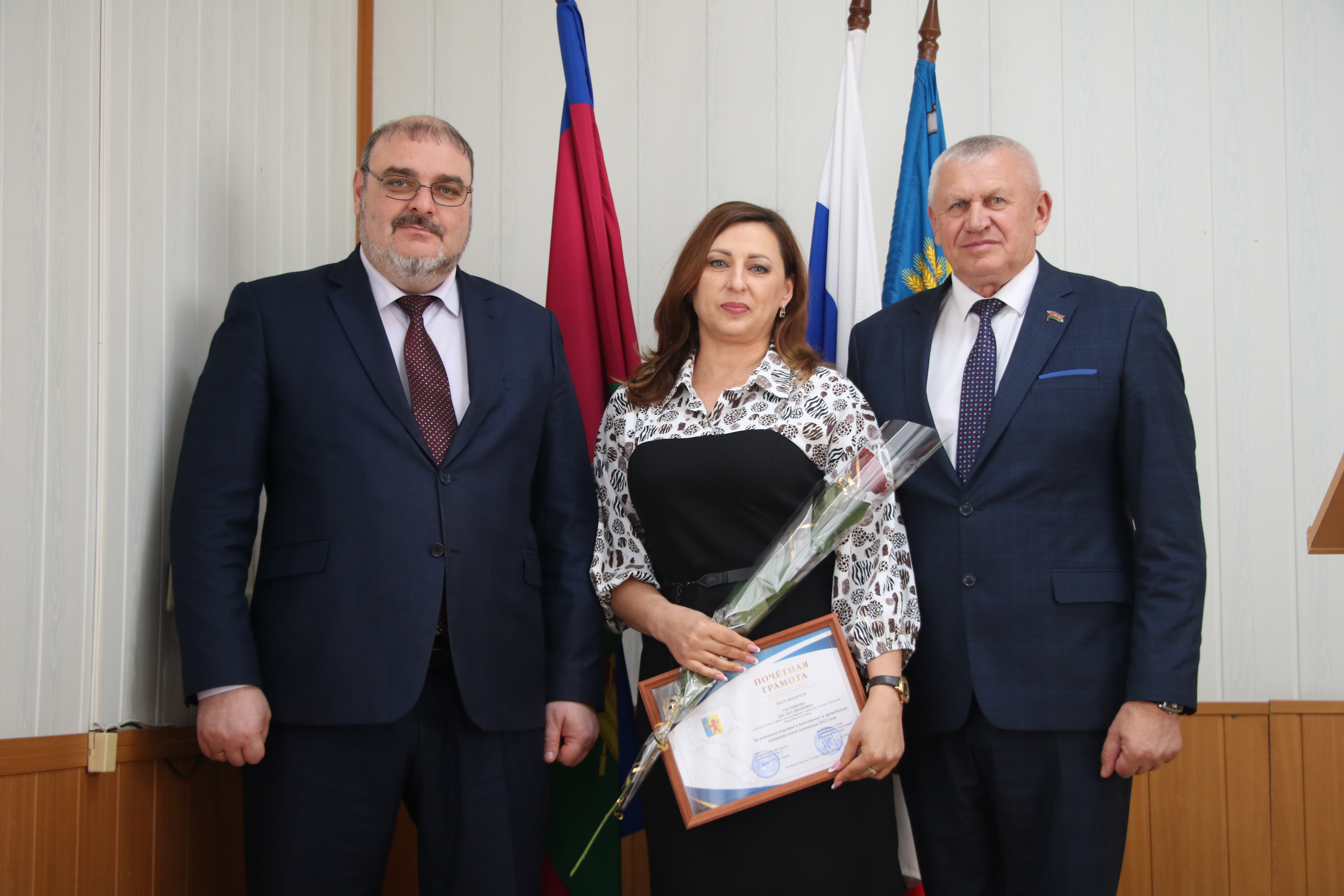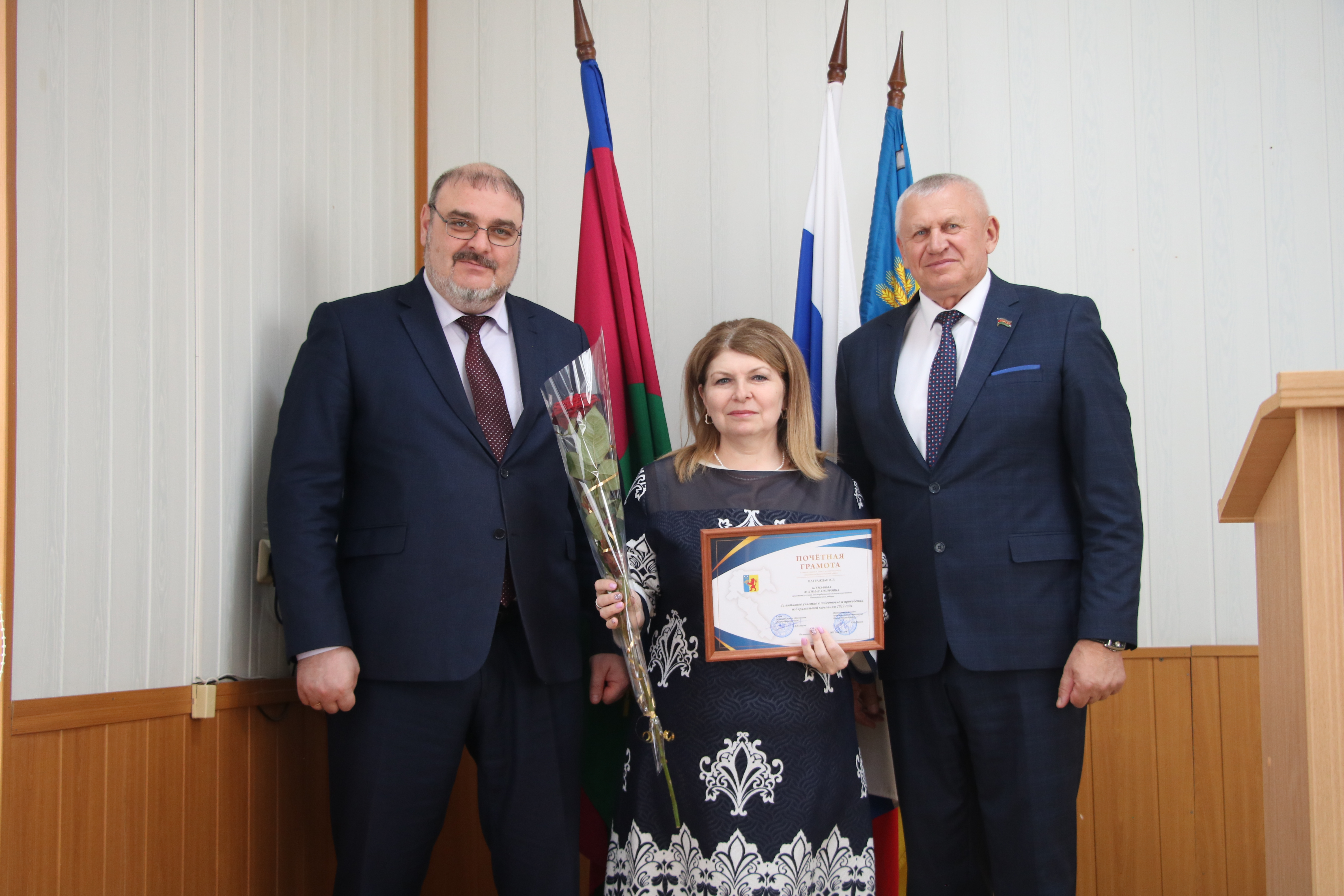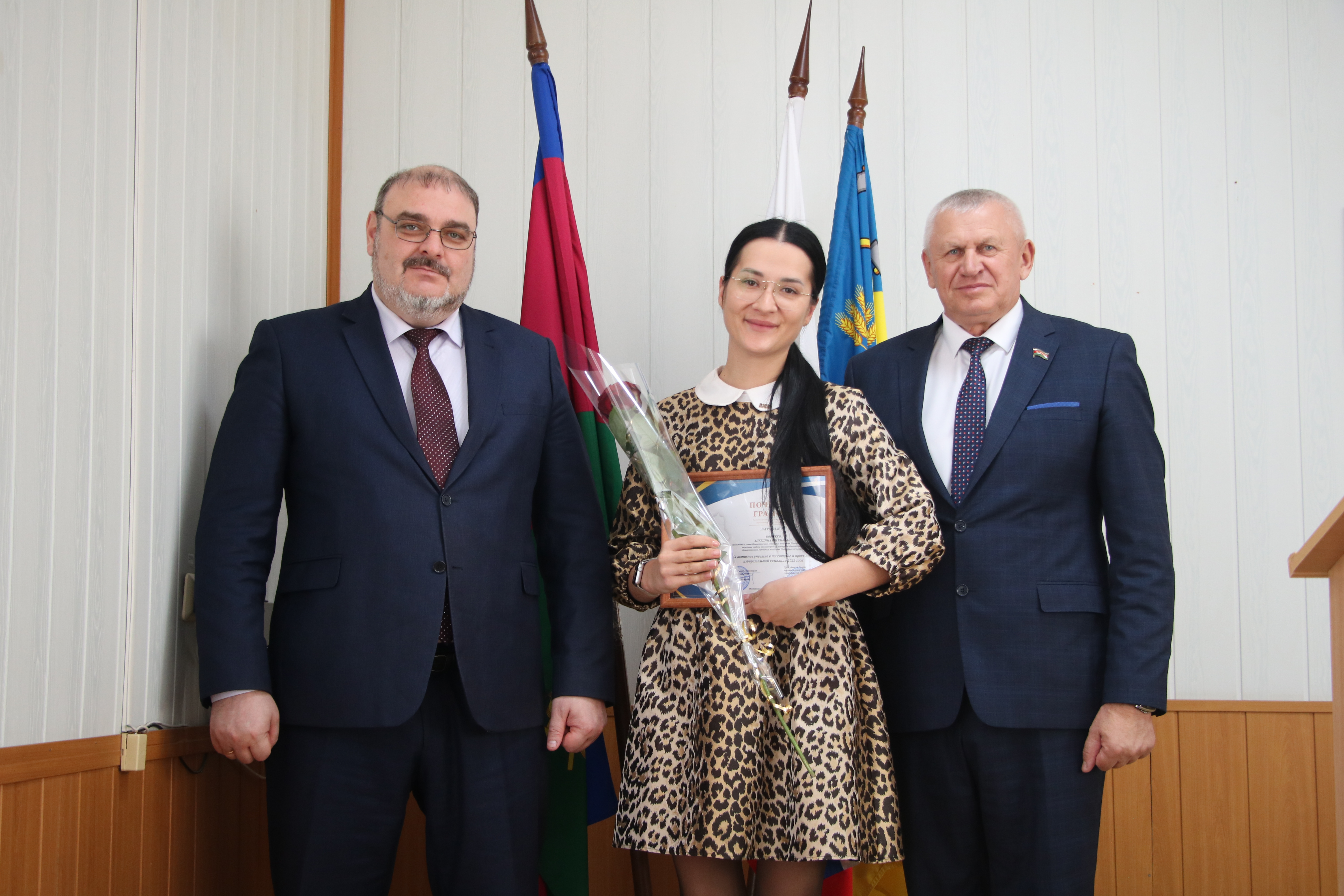 Во второй части мероприятия в администрации муниципального образования Новокубанский район руководитель муниципалитета Александр Гомодин и председатель Совета Евгений Шутов вручили почетные грамоты и благодарственные письма администрации и Совета муниципального образования Новокубанский район отличившимся специалистам.