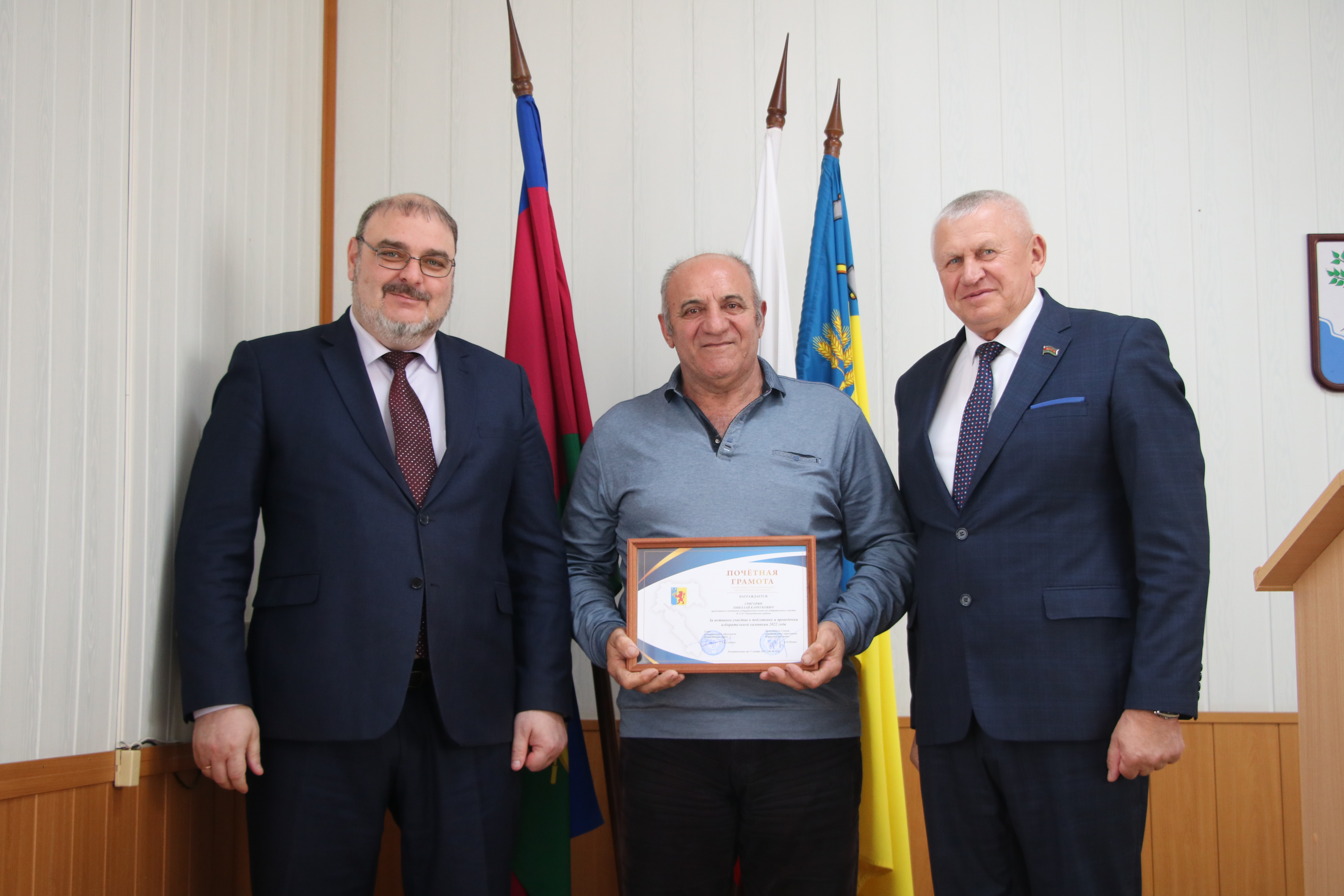 Александру Гомодину от имени председателя избирательной комиссии Краснодарского края Алексея Черненко вручили благодарность председателя за активное содействие и существенную помощь в организации и проведении выборов депутатов Законодательного Собрания Краснодарского края седьмого созыва.