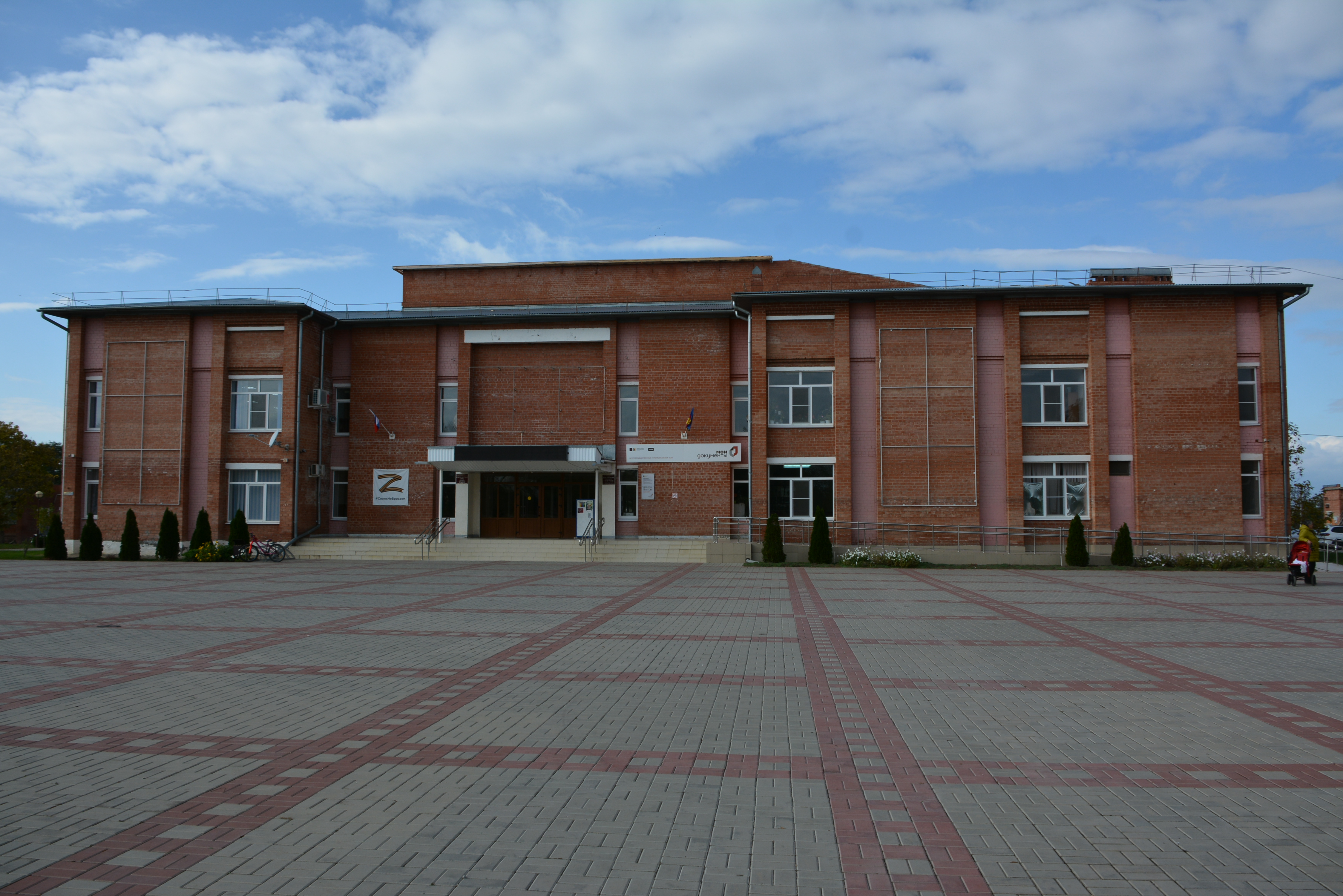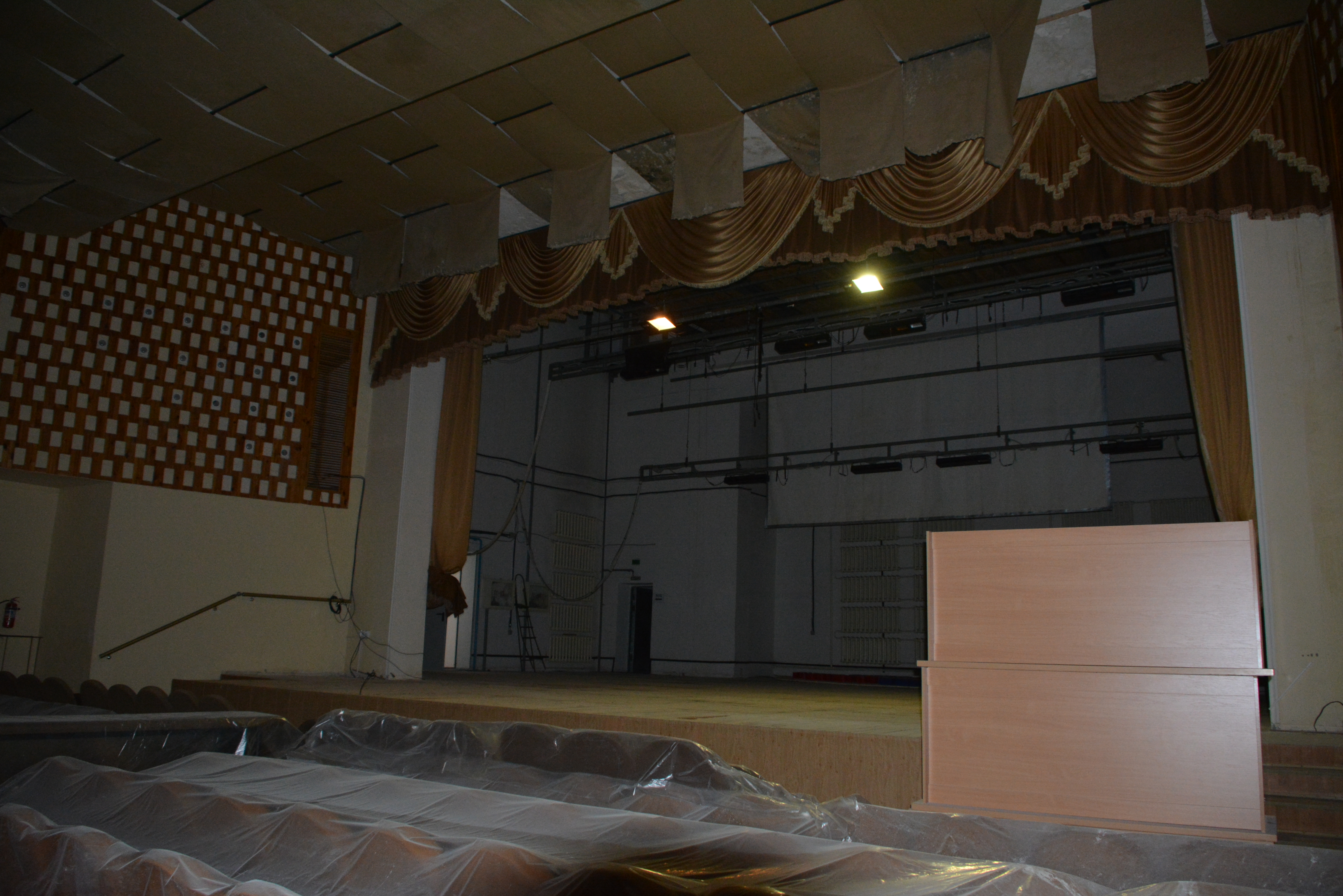 Строители ведут ремонт кровли и внутренних помещений одновременно. В непострадавшей от стихии левой части здания активно проводятся репетиции, работают кружки и клубы по интересам, читателей встречает коллектив библиотеки.