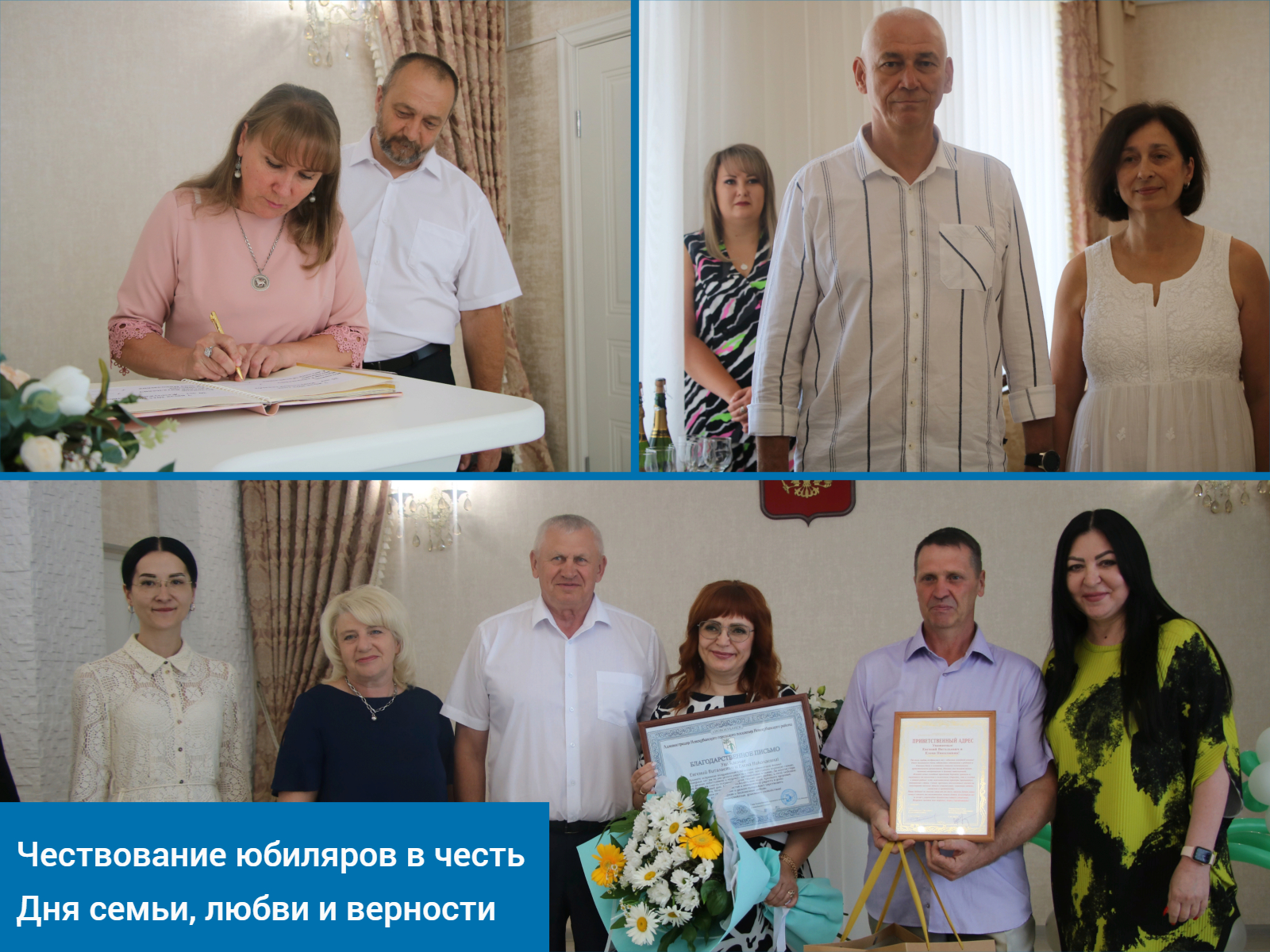 Глава района Александр Гомодин и председатель Совета Евгений Шутов поздравили с праздником, а также выразили признание и благодарность семейным парам за их примерную семейную жизнь. В своих поздравлениях они подчеркнули важность семьи как основы общества и пожелали всем счастья, любви и верности.