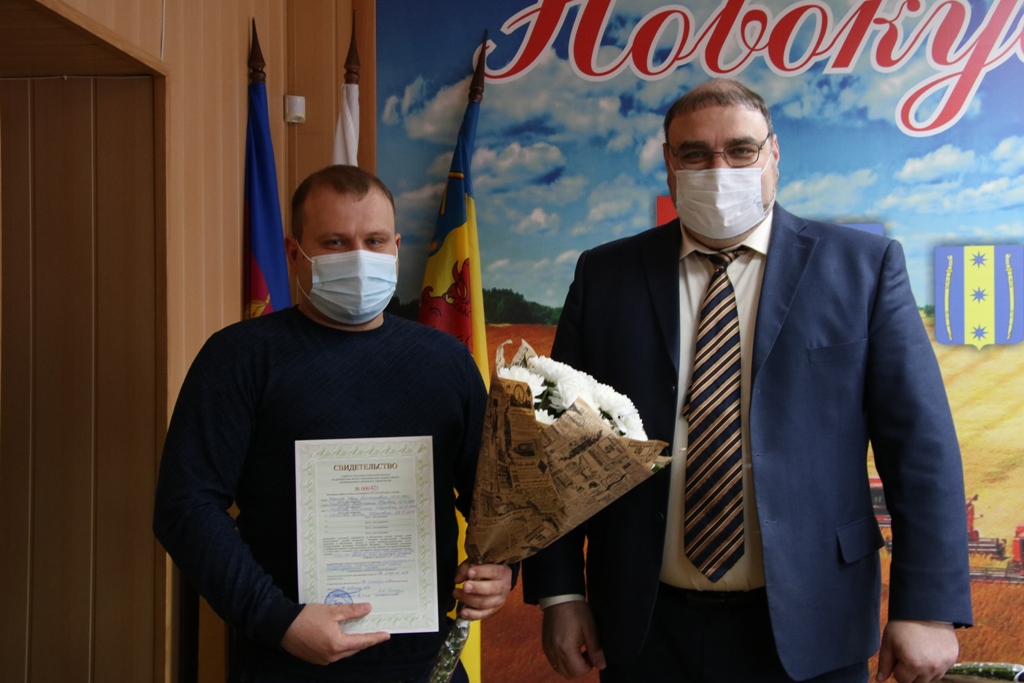 На торжественное вручение сертификатов социальных выплат в связи с эпидемиологической обстановкой прибыли Иван Косилов и Ирина Макаренко. Глава района Александр Гомодин поздравил представителей семей с завершением сложного и тернистого пути по улучшению жилищных условий и пожелал семейного благополучия в новом доме.