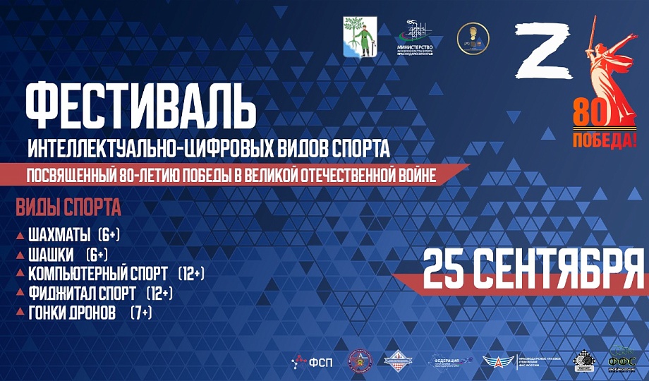 📣 25 сентября в г. Новокубанск состоится фестиваль интеллектуально-цифровых видов спорта, посвященный 80-летию Победы в Великой Отечественной войне.
