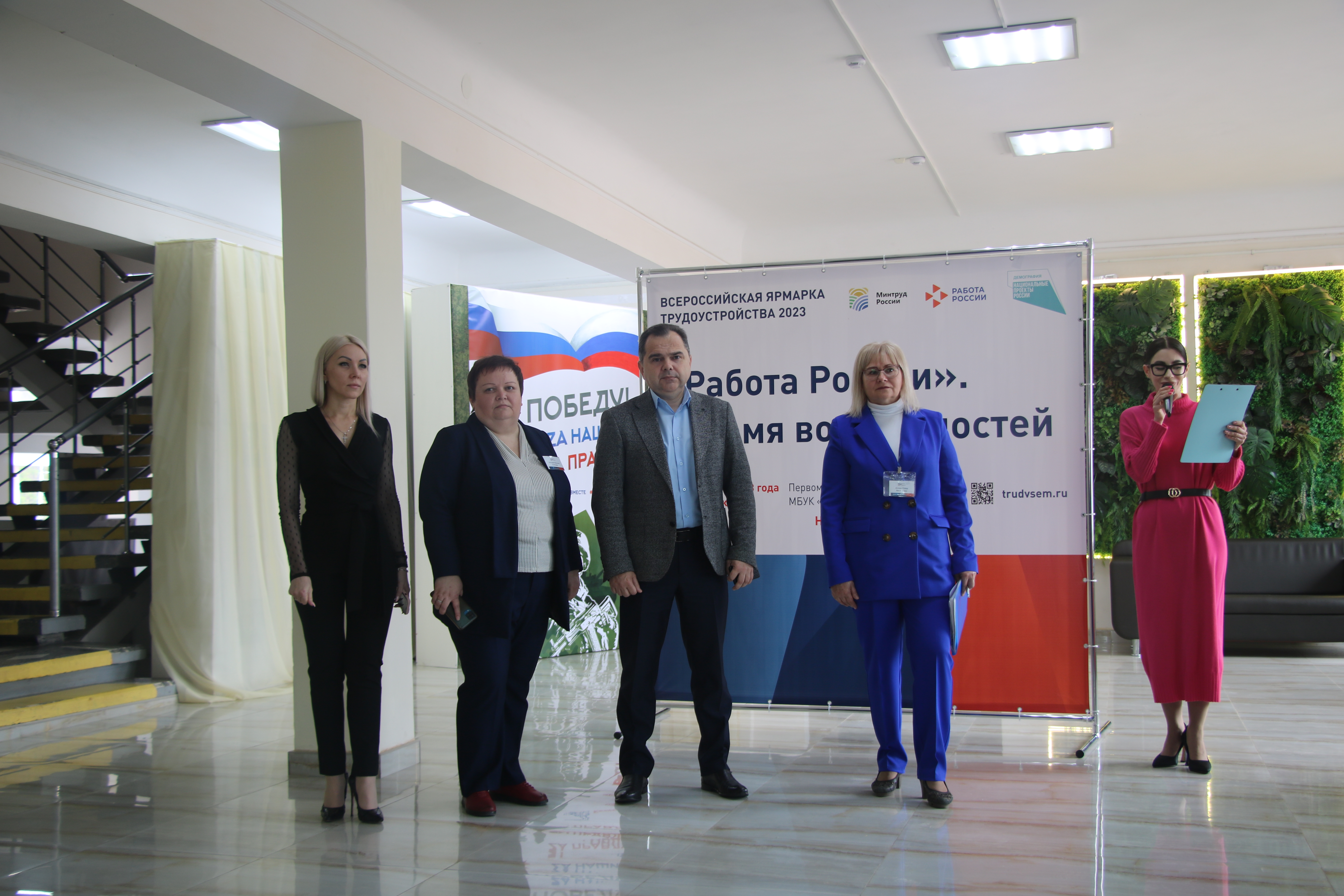 ГКУ КК "Центр занятости населения Новокубанского района" организовал 14-15 апреля 2023 года первый этап Всероссийской ярмарки трудоустройства «Работа России. Время возможностей», которая проходила в МБУК «НКДЦ» им.Наумчиковой В.И. по адресу: г. Новокубанск, ул. Первомайская, д. 132.