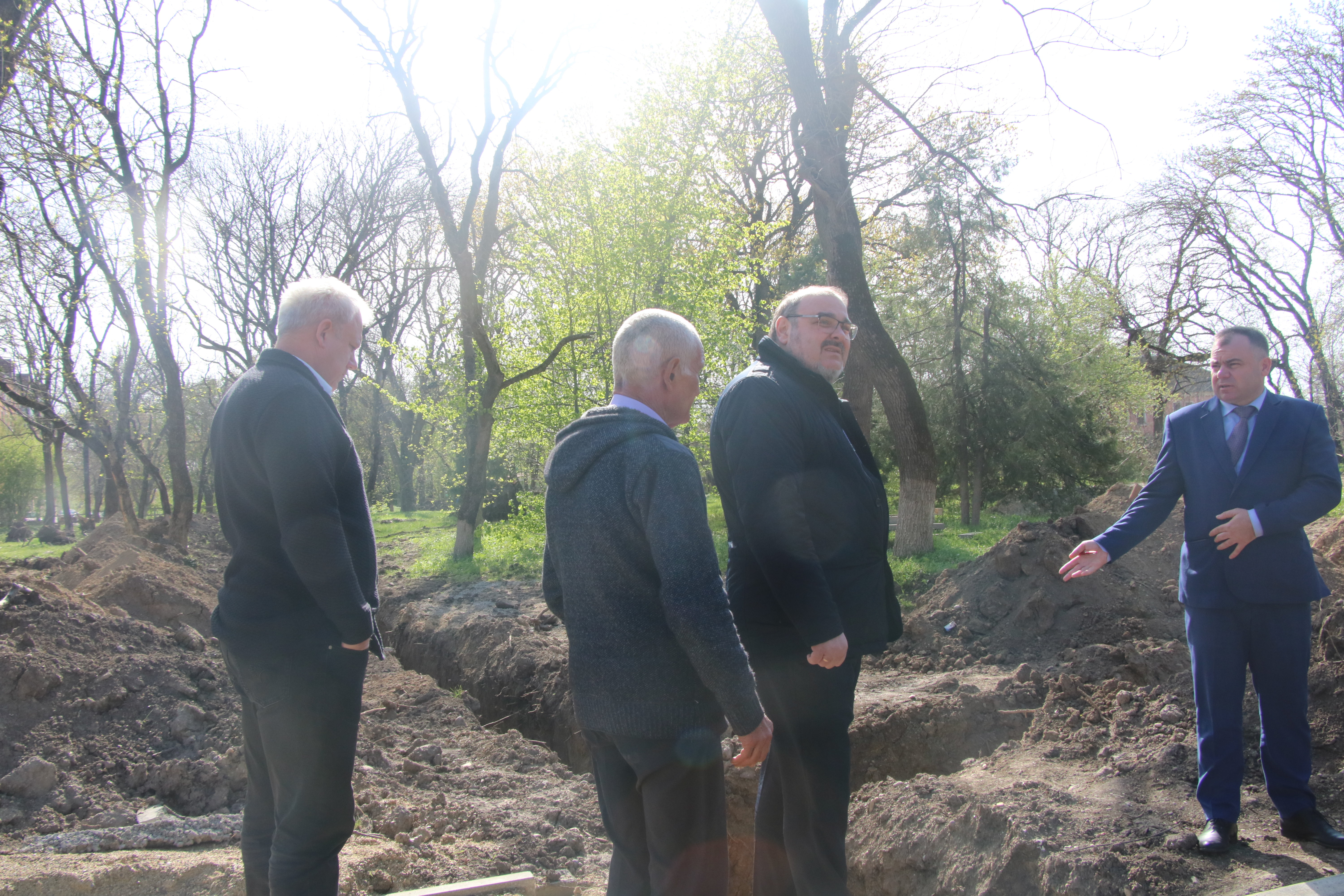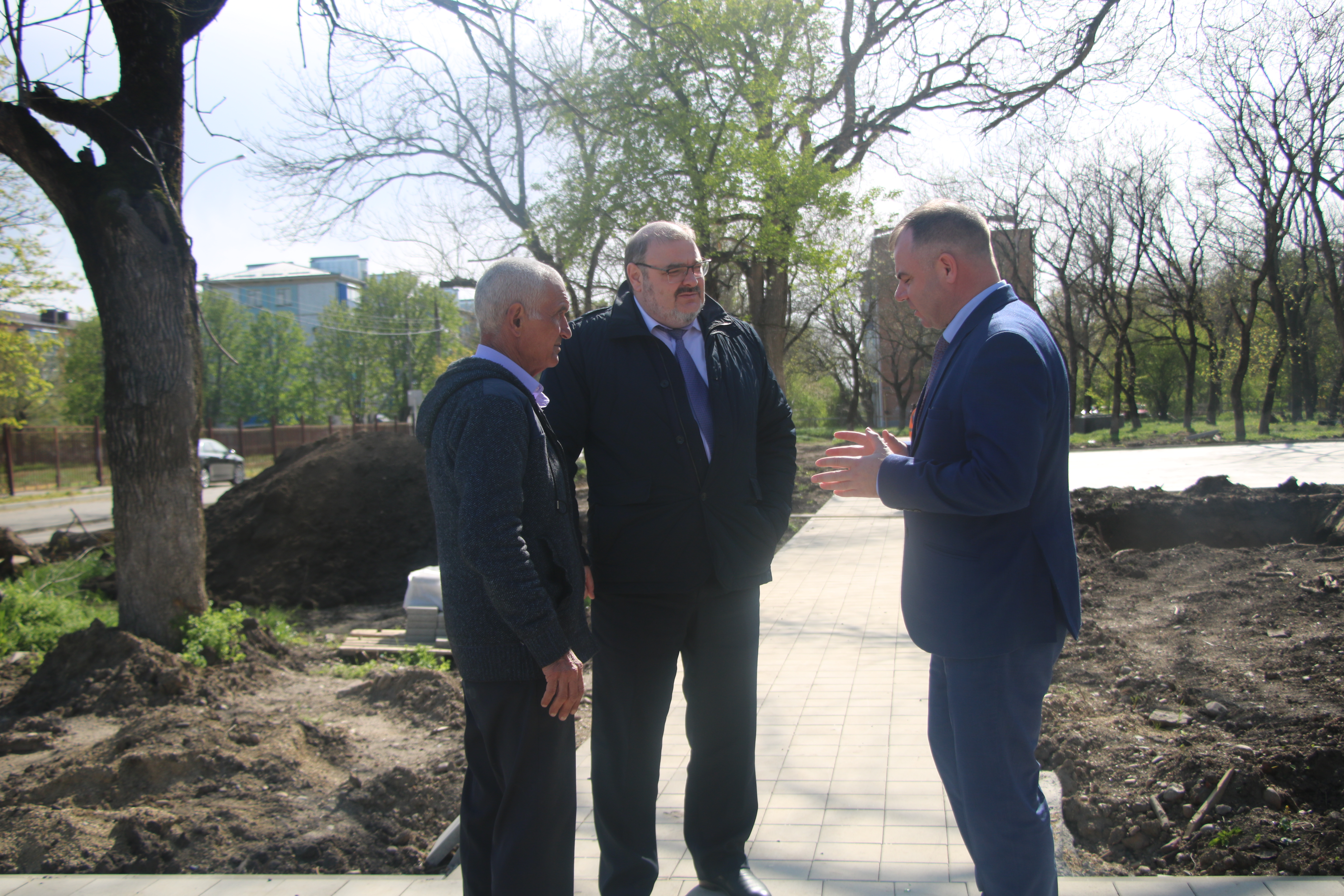 Глава муниципального образования Новокубанский район Александр Гомодин, в сопровождении с заместителем Русланом Кадыровым, главой Новокубанского городского поселения Павлом Манаковым и подрядчиком проинспектировали ход работ по благоустройству парка