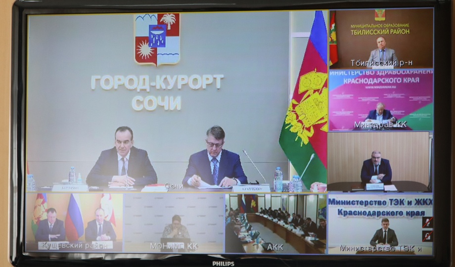постоянно действующего координационного совещания по обеспечению правопорядка и Антитеррористической комиссии в Краснодарском крае в режиме видеоконференцсвязи с руководителями всех муниципалитетов края.