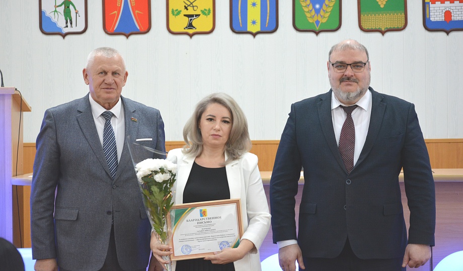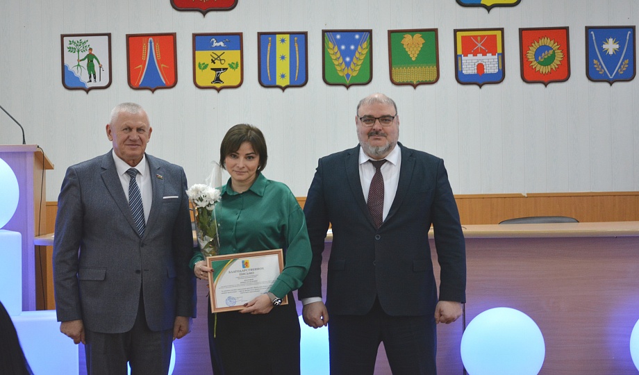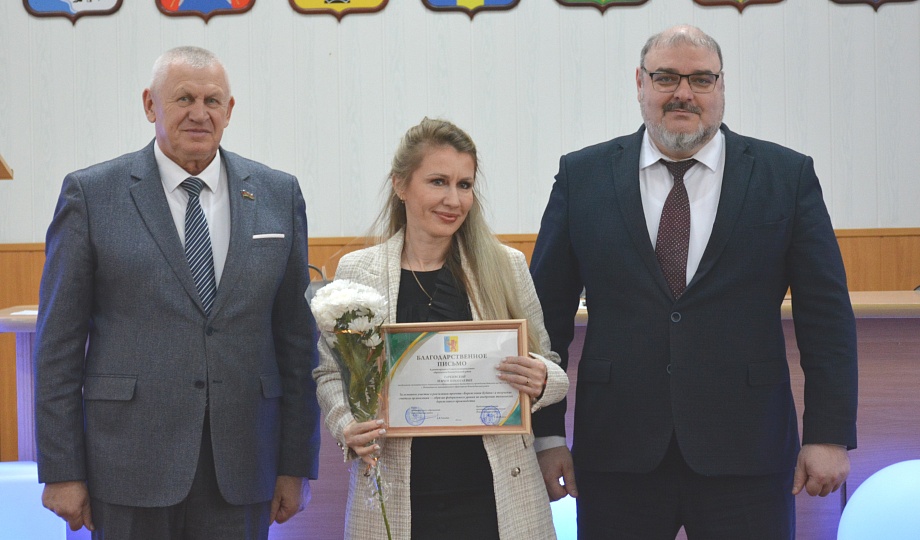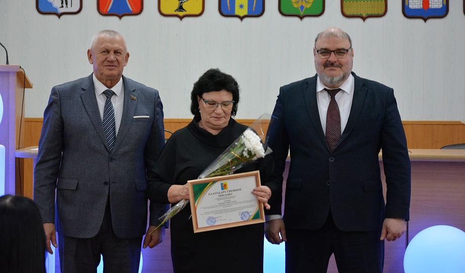 Александр Гомодин и Евгений Шутов поблагодарили всех сотрудников за совместную работу и вручили благодарственные письма администрации. 👏 Особое внимание уделили руководителям образовательных учреждений и индивидуальным предпринимателям за их большой вклад в патриотическое воспитание молодежи, а также за помощь участникам СВО и мирным жителям Донбасса.