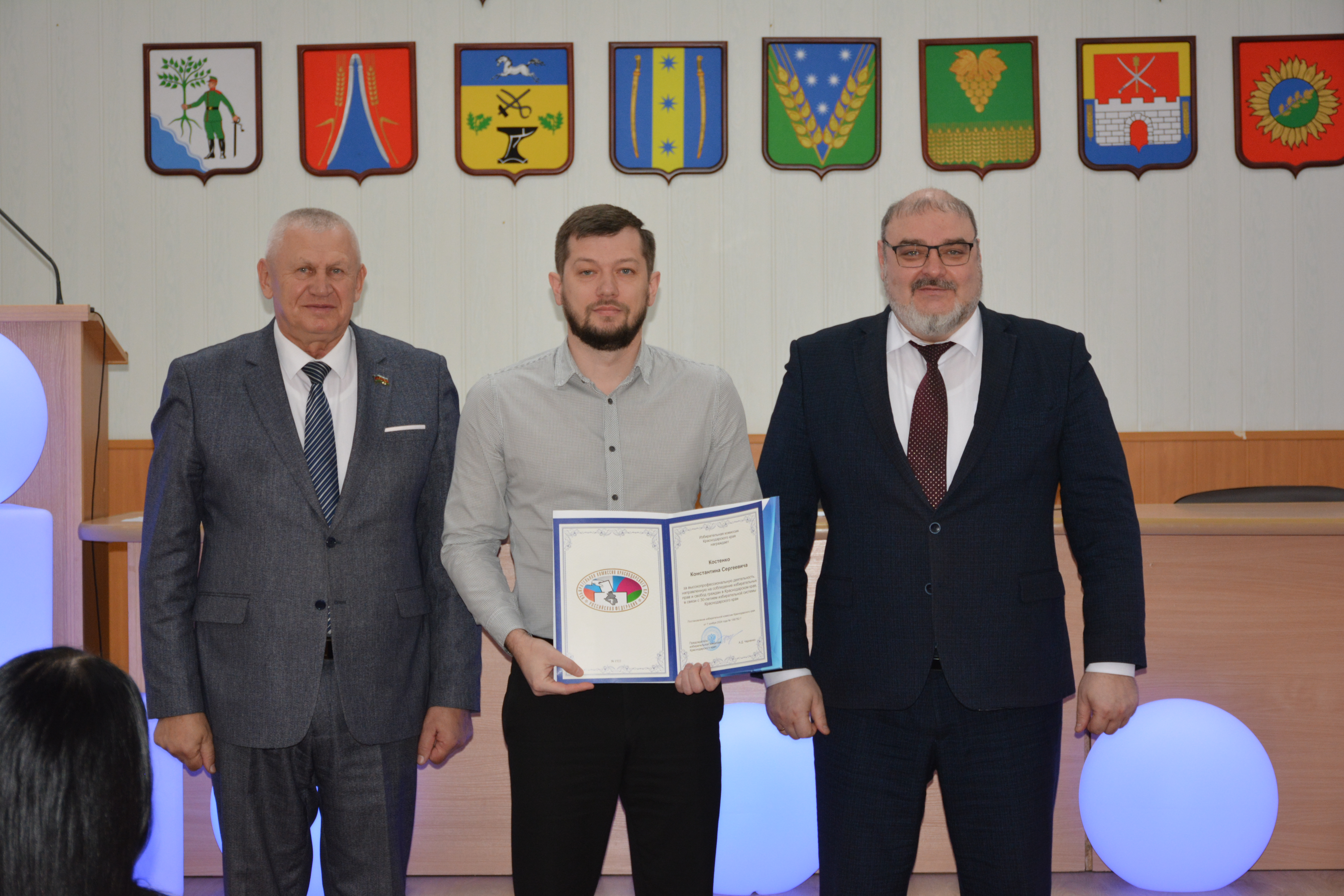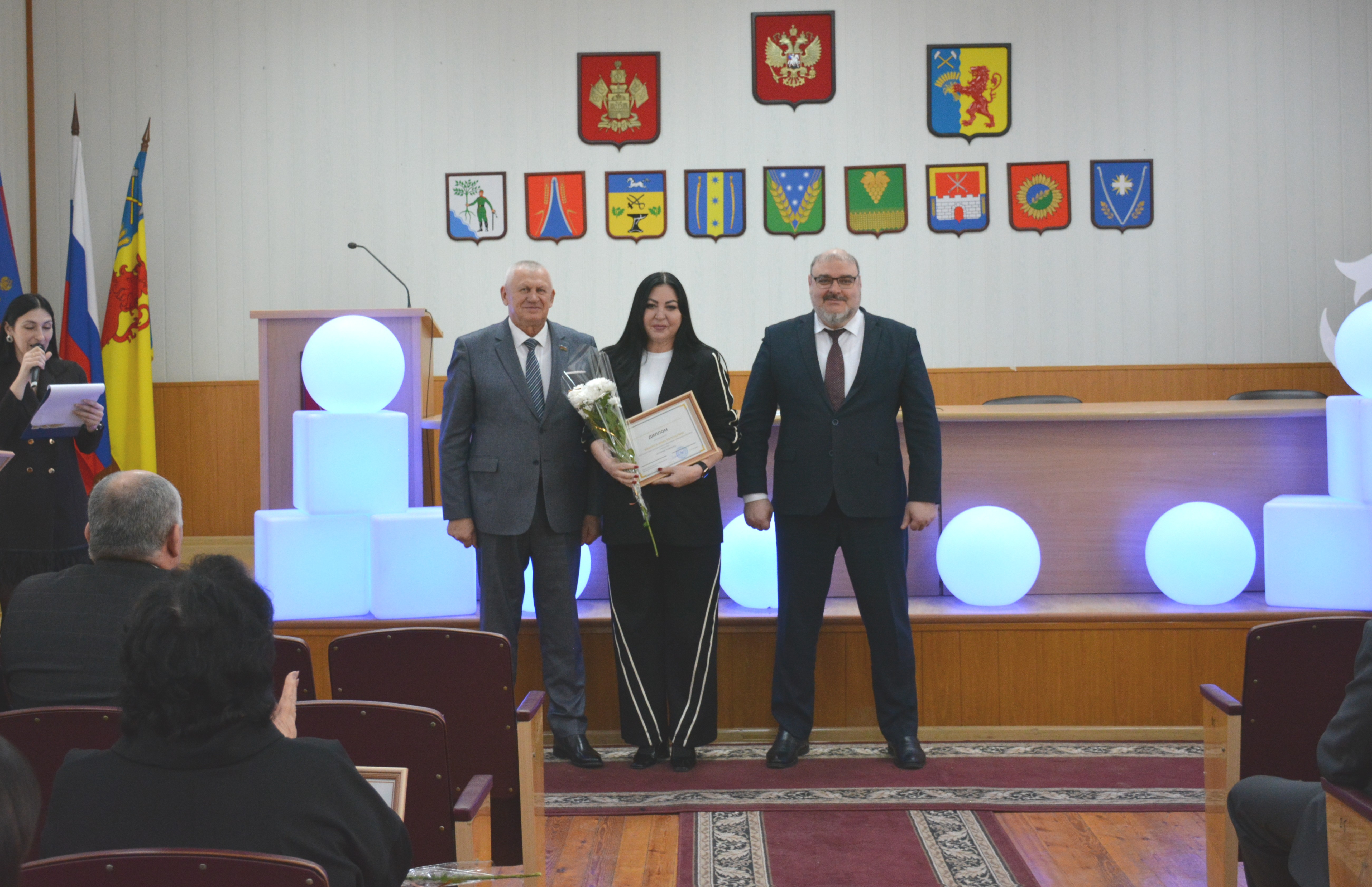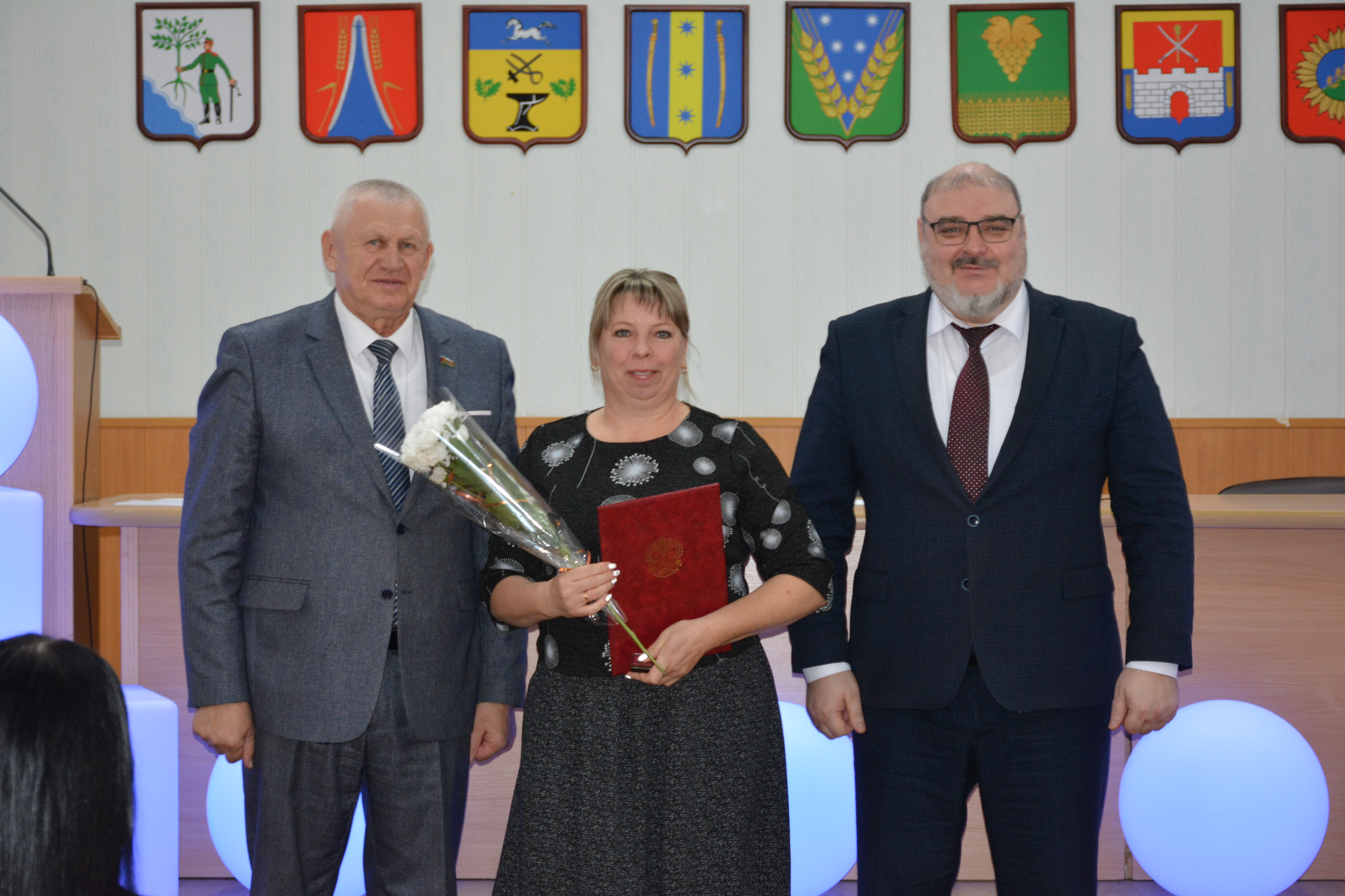 Александр Гомодин и Евгений Шутов поблагодарили всех сотрудников за совместную работу и вручили благодарственные письма администрации. 👏 Особое внимание уделили руководителям образовательных учреждений и индивидуальным предпринимателям за их большой вклад в патриотическое воспитание молодежи, а также за помощь участникам СВО и мирным жителям Донбасса.