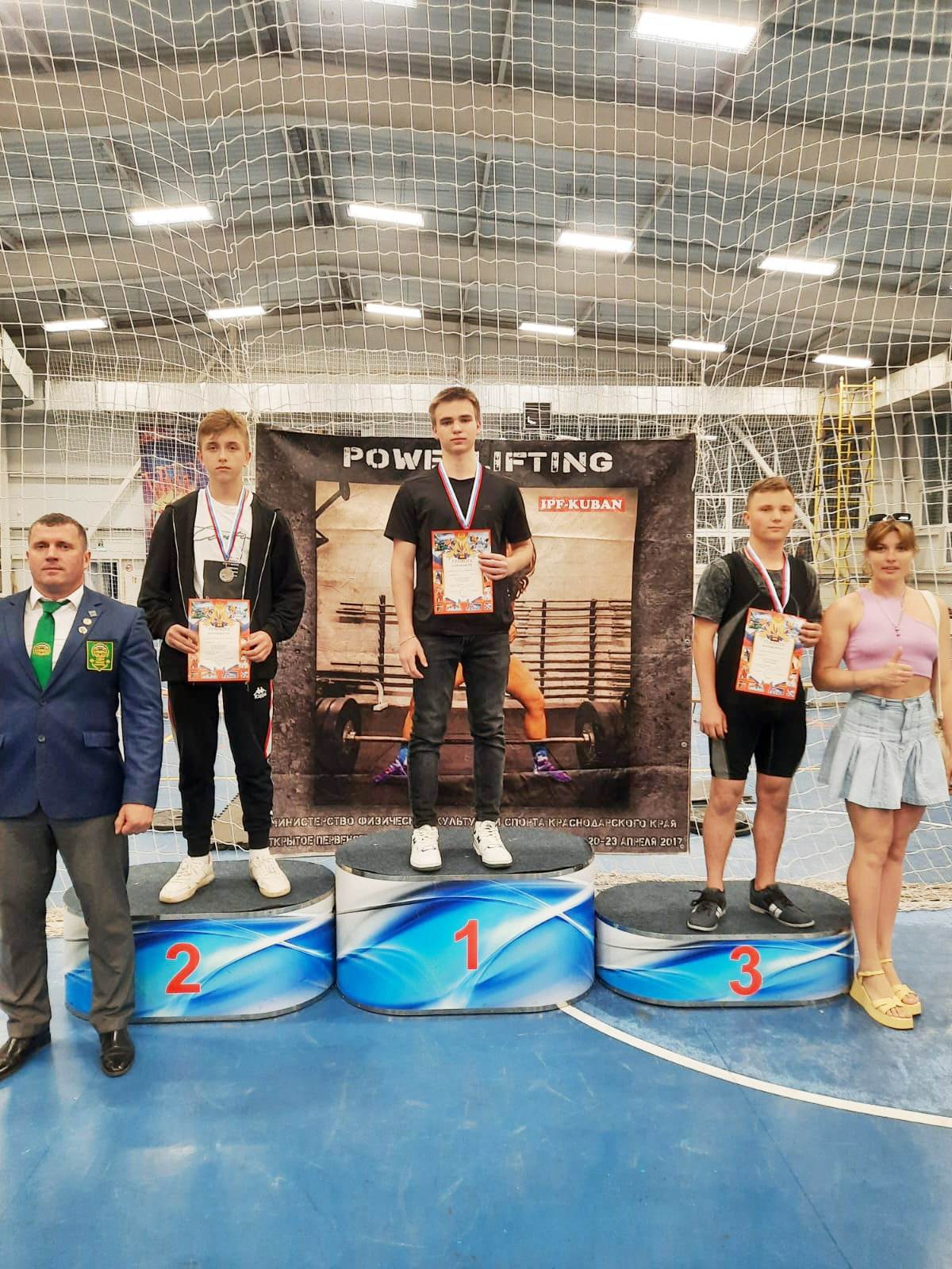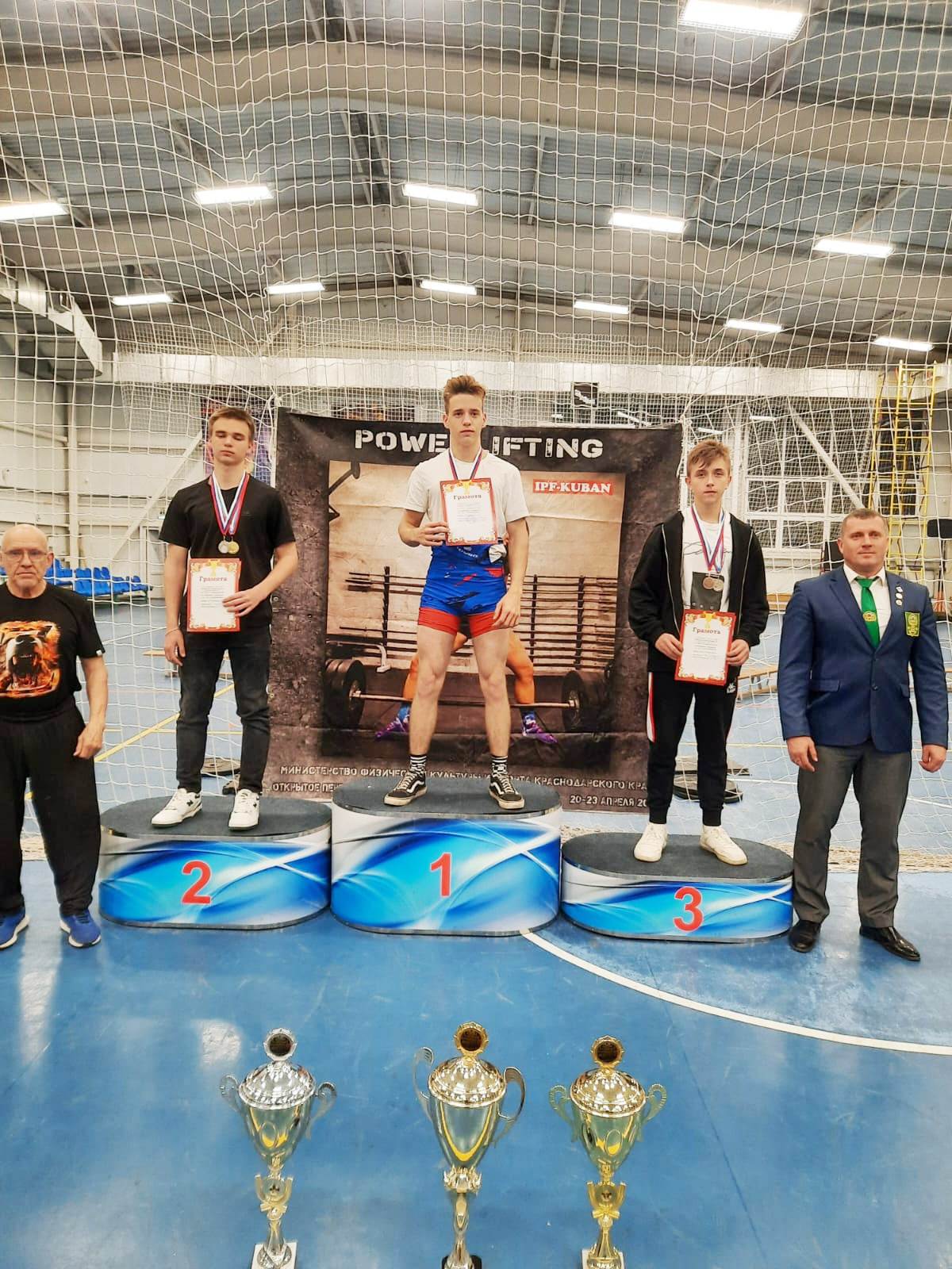 Хочется отметить очень хорошую подготовку спортсменов всей нашей команды. Это сразу было очевидно по самому психологическому настрою спортсменов. Под руководством старшего тренера по пауэрлифтингу Лунева Алексея Алексеевича на помост для выполнения упражнения поднялись семь из двенадцати представленных спортсменов команды, а некоторые поднимались дважды, потому что стали еще и призерами МО Динского района. Среди них хочется отметить таких спортсменов, как: Алейников Денис (1-край, 1-МО), Хворостов Алексей (2-край, 1-МО), Зиновьев Антон (3-край, 3-МО), Сохранный Александр (3-край, 2-МО), Лиховидов Алексей (2-край, 2-МО), Борщаков Тимофей (2-МО) и Гусев Александр (1-МО).