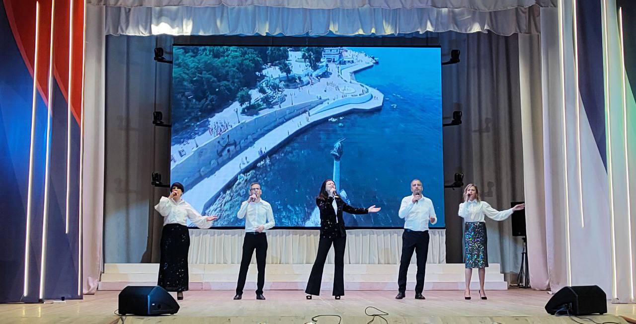 Свои музыкальные поздравления со сцены подарили зрителям творческие коллективы Новокубанского района.