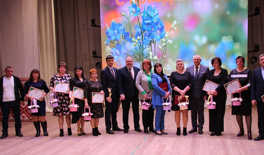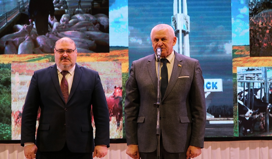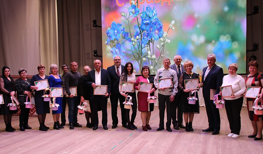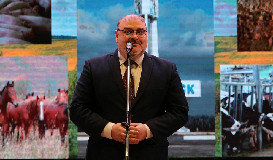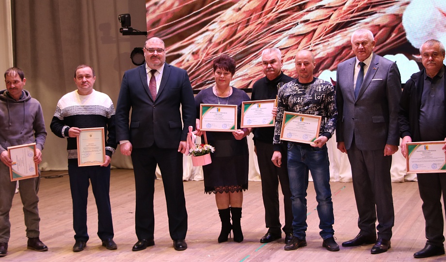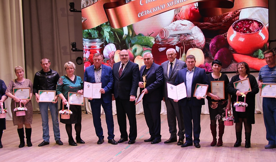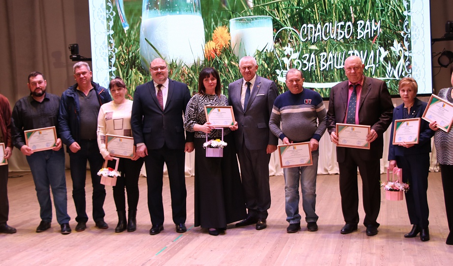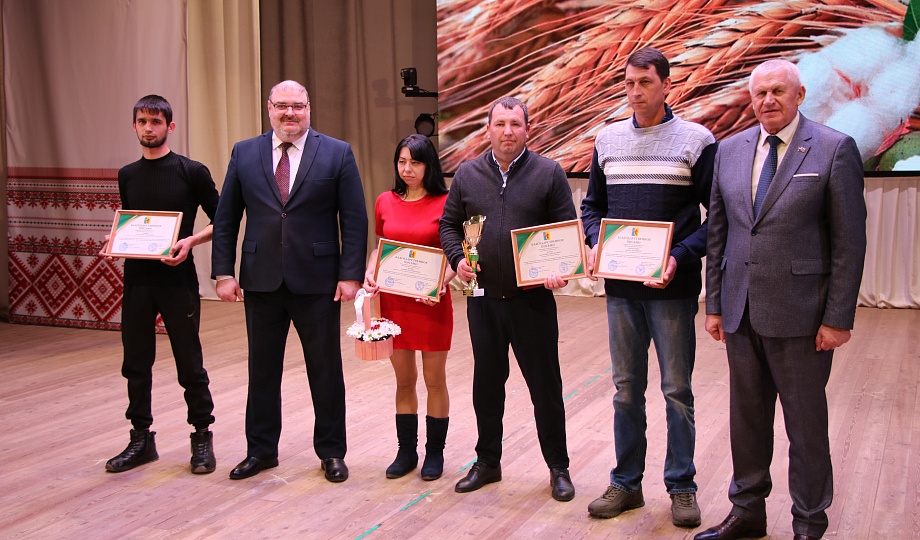 Глава муниципалитета Александр Гомодин совместно с председателем Совета Евгением Шутовым со сцены поздравили с профессиональным праздником тружеников сельского хозяйства.
