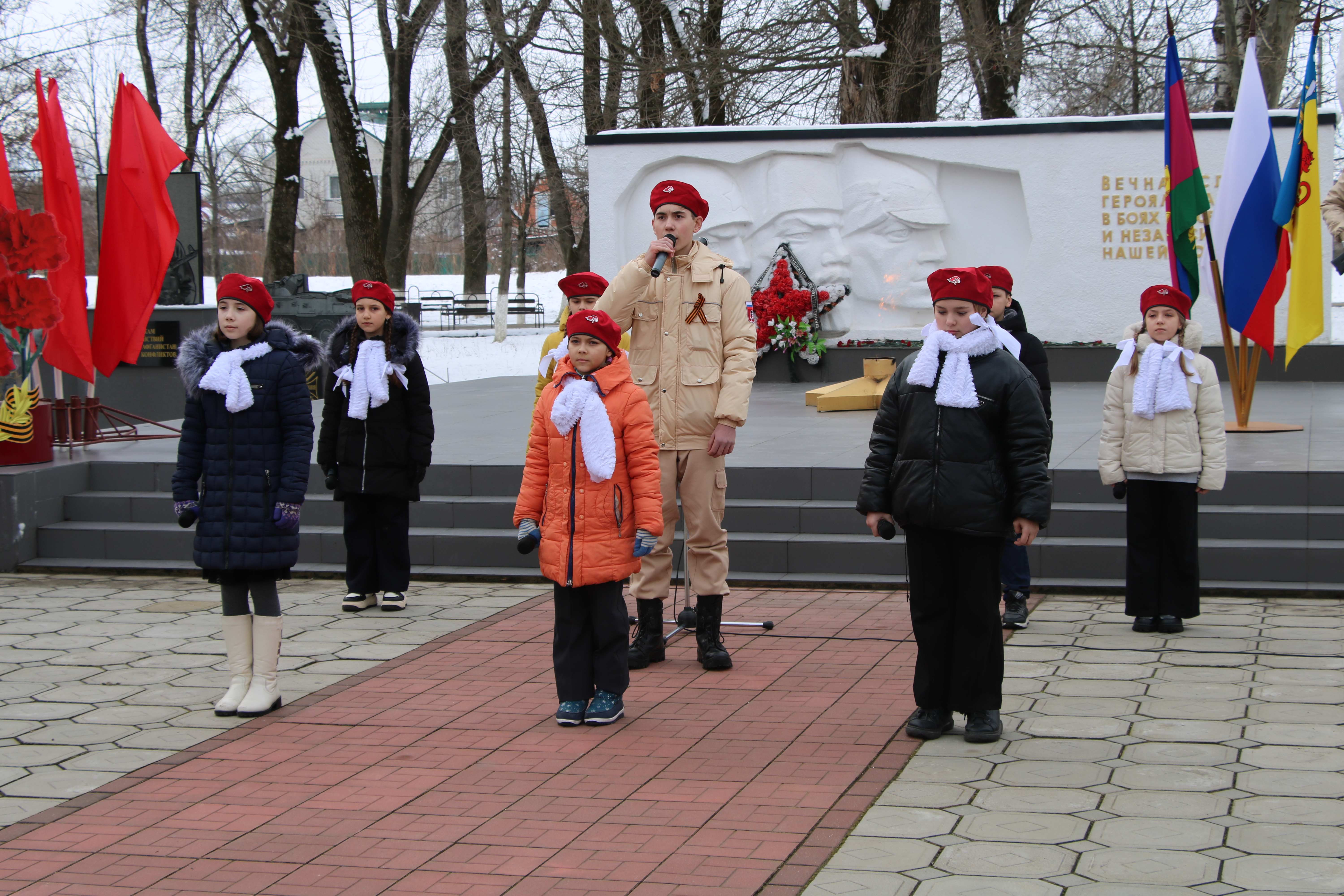 Отдавая дань памяти тем, кто погиб на фронтах Великой Отечественной войны и в ходе специальной военной операции на Украине, в знак вечной благодарности и преклонения перед подвигом солдат была объявлена минута молчания. Завершилось мероприятие возложением цветов к мемориалу «Вечный огонь».