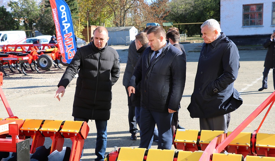По завершению пленарной части была организована экскурсия по территории машиноиспытательной станции. Федор Иванович в сопровождении главы Новокубанского района Александра Гомодина, председателя Совета муниципального образования Новокубанский район Евгения Шутова, заместителя главы района, начальника управления сельского хозяйства и продовольствия Александра Махринова ознакомился с выставкой сельхозтехники, приборов, оборудования заводов-изготовителей, которая проходила в ФГБУ «Кубанская МИС».
