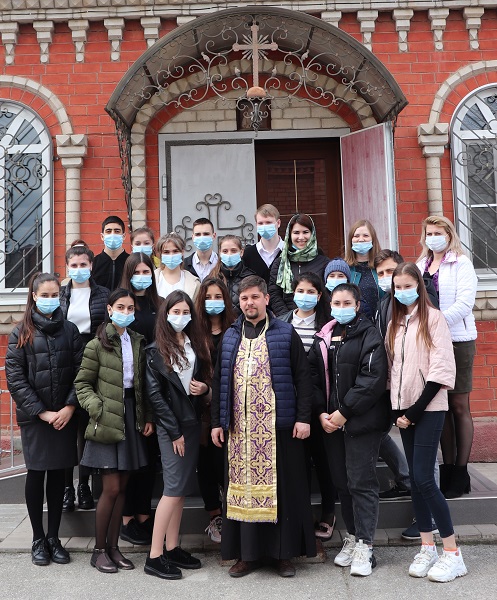 В первую очередь молодёжь посетила храм Апостола и Евангелиста Иоанна Богослова. Делегацию встретил отец Дмитрий. Внутри стен храма он рассказал ребятам о празднике Благовещения, его истории и смысле. Продолжил выступление служитель прихода Евгений Филатов, который рассказал историю храма от момента его основания до сегодняшнего дня, а также поведал о святой Марии Египетской, память которой совершается как раз сегодня - 14 апреля. Молодёжь задавала вопросы, связанные с религией и православной традицией.