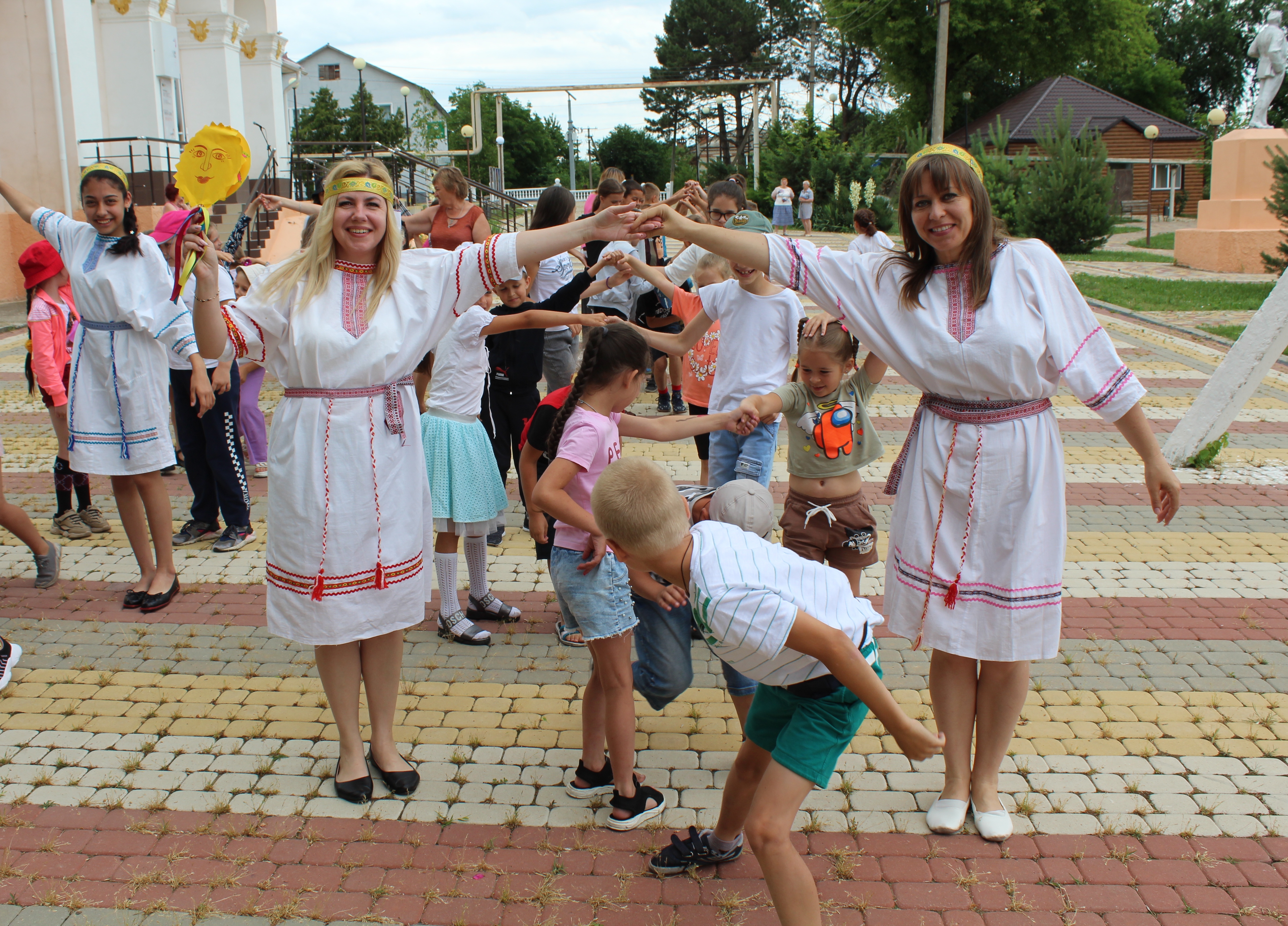 Затем ребята на площади клуба поиграли в веселые народные игры «Солцеворот, посади свой огород», «Ручеек», «Кошки и мышки». В народных праздниках России и Кубани фокусируются накопленные веками тончайшие наблюдения за характерными особенностями времён года, погодными явлениями, поведением птиц и животных, изменения в растительном мире. Наша задача воспитывать у детей чувство причастности к русской истории, культуре, обществу, которое дорожит своим прошлым, как достоянием.
