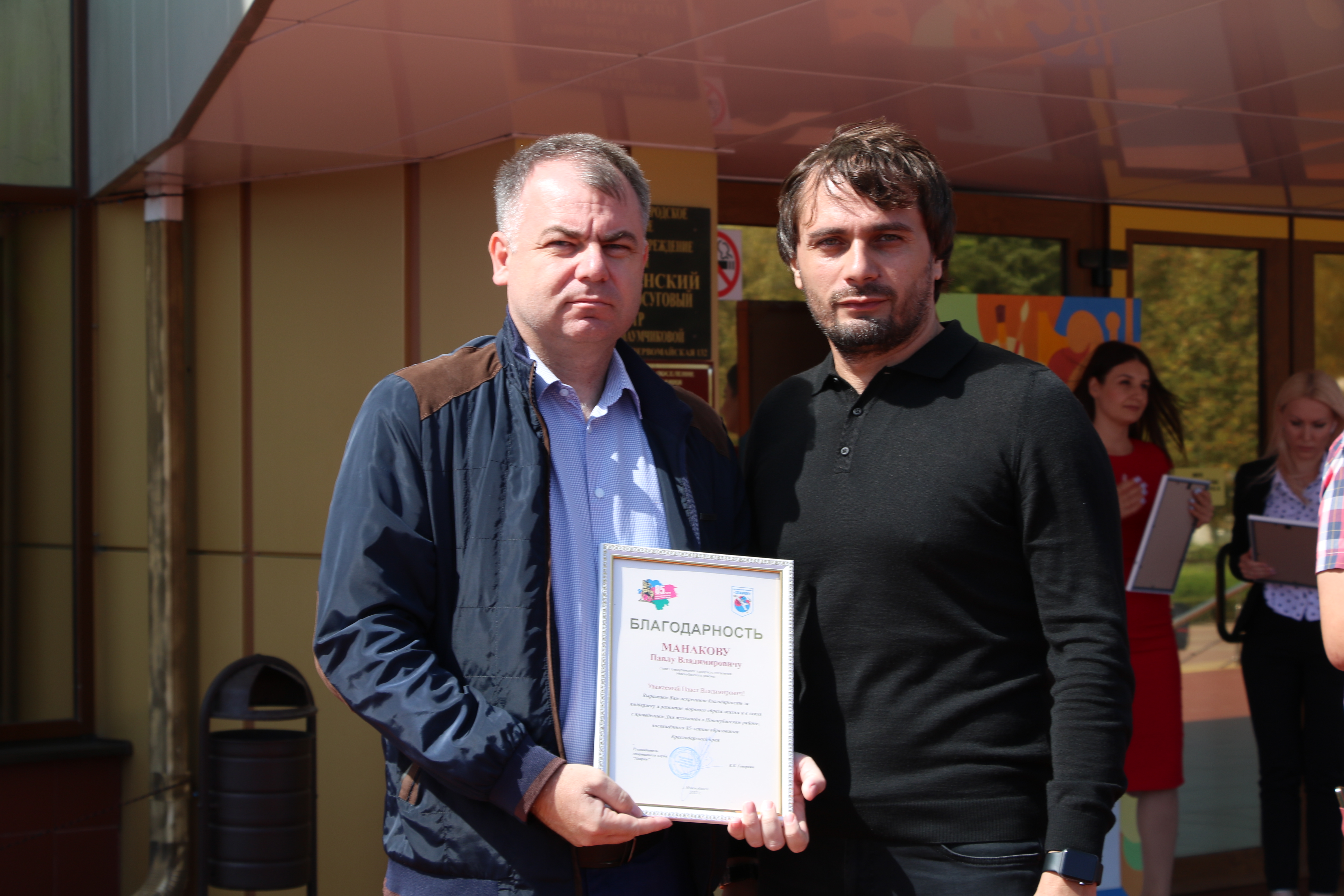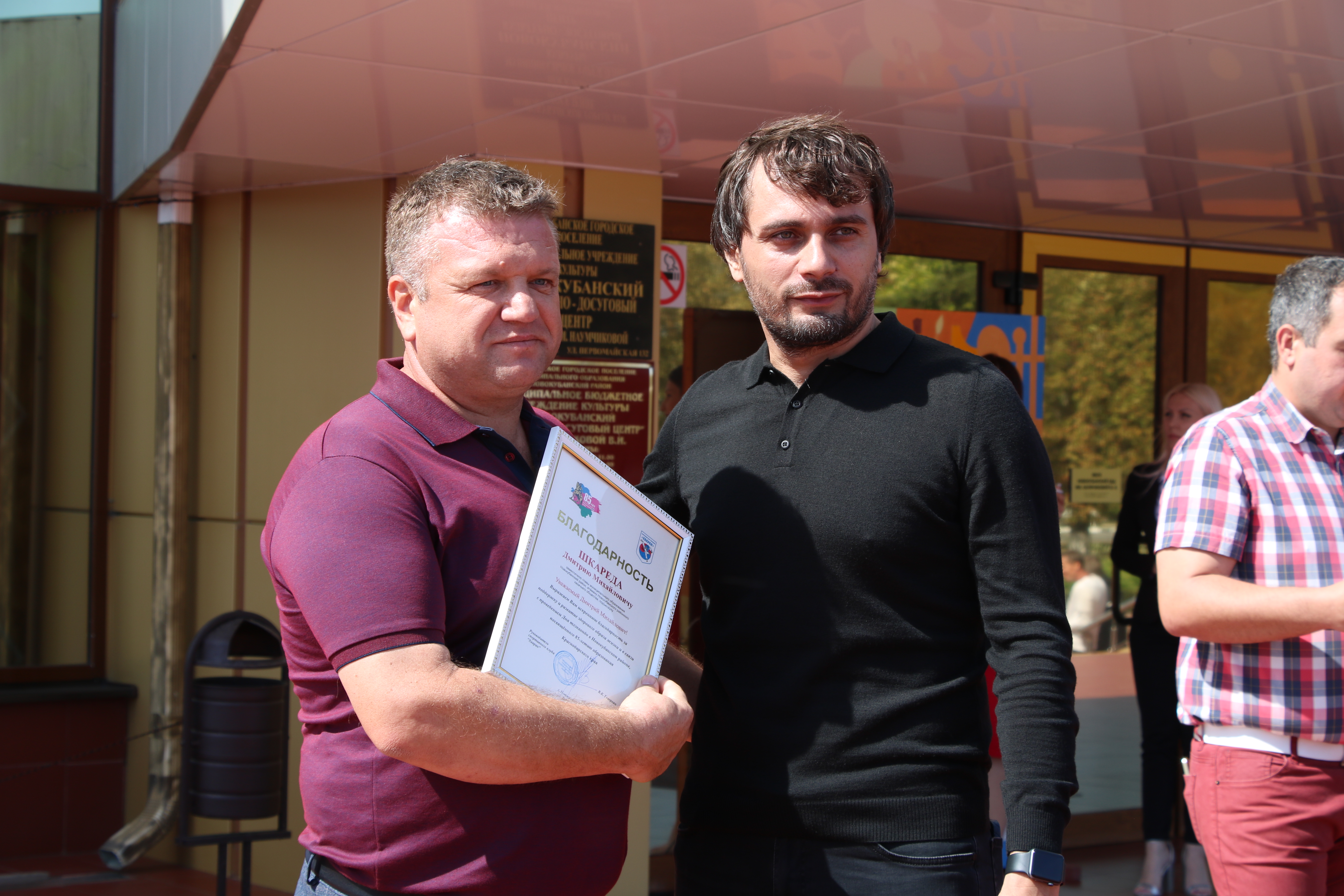 Председатель Совета муниципального образования Новокубанский район Евгений Шутов от имени министра физической культуры и спорта Краснодарского края Серафима Тимченко вручил благодарственное письмо за существенный вклад в развитие отрасли физической культуры и спорта Краснодарского края Валерию Геворкян.
