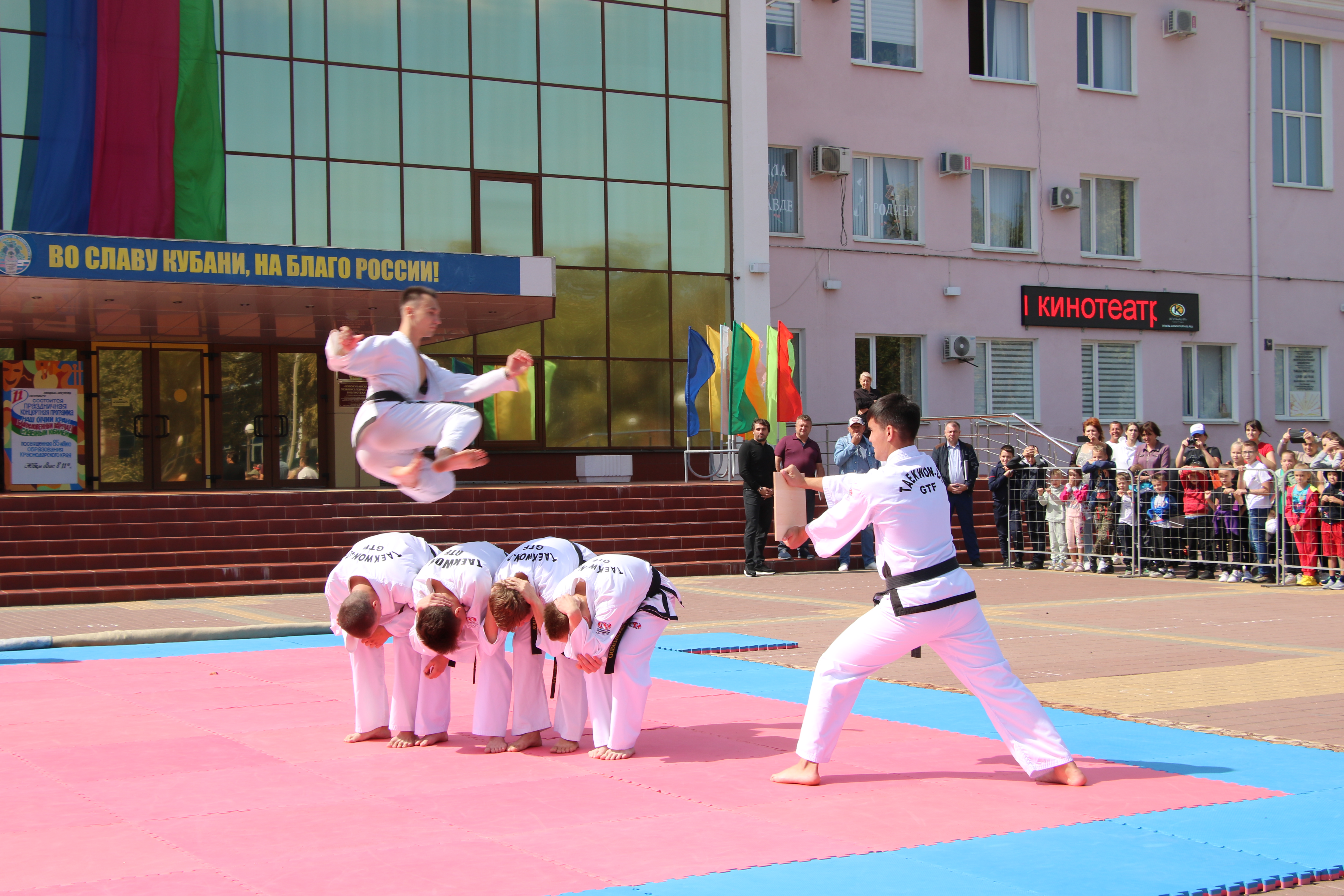 В преддверии празднования Дня образования Краснодарского края на Площади Искусств г. Новокубанск состоялось тематическое мероприятие «Наш отчий край благословенный встречает славный юбилей!», посвященное 85-летию образования Краснодарского края и Дню тхэквандо.
