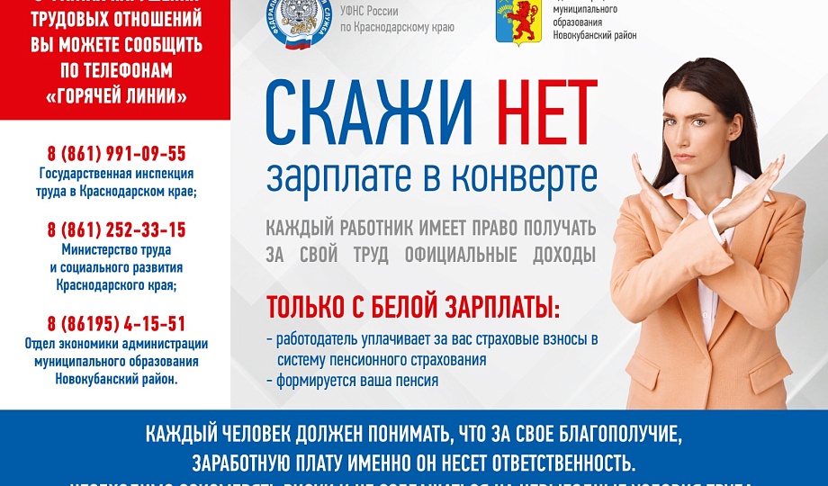 Призываем вас строго соблюдать трудовое законодательство, проявить социальную ответственность и привести в соответствие трудовые отношения с каждым работником, не подвергая себя риску привлечения к установленной законом ответственности, применения санкций со стороны органов надзора и контроля, задуматься о негативных последствиях и сделать правильный выбор.