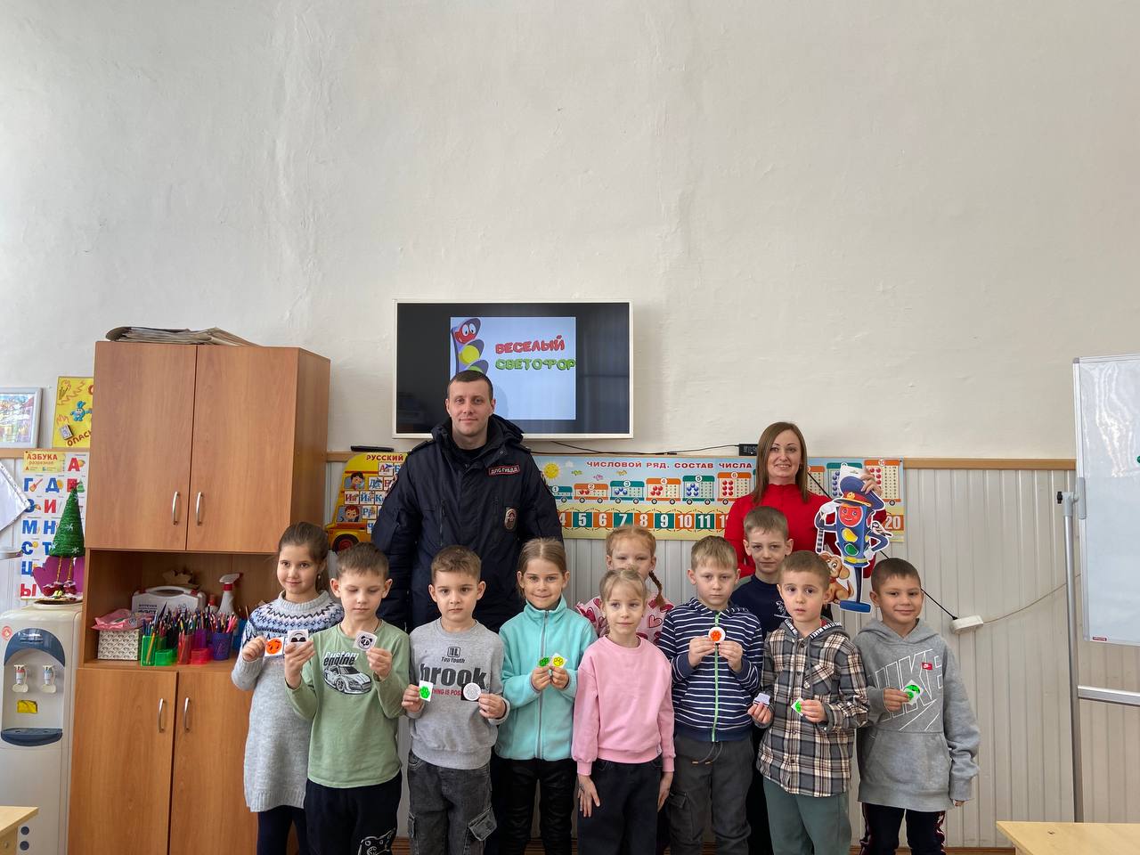 Новокубанские автоинспекторы провели игру «Веселый светофор» на знание ПДД в детском саду