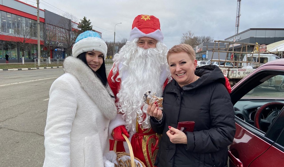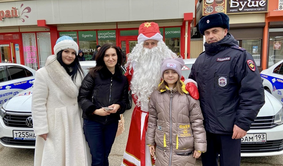 В рамках профилактического проекта МВД России сотрудники дорожно-патрульной службы вместе с представителями местной автошколы «Кубань-Профи», Полицейским Дедом Морозом и Снегурочкой поздравили жителей и гостей Новокубанского района с предстоящими Новым годом и Рождеством Христовым. При этом совместили приятное с полезным, напомнили автомобилистам о соблюдении Правил дорожного движения и рассказали об особенностях управления транспортом в зимнее время года.