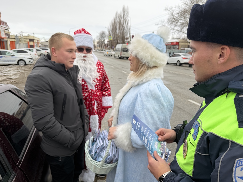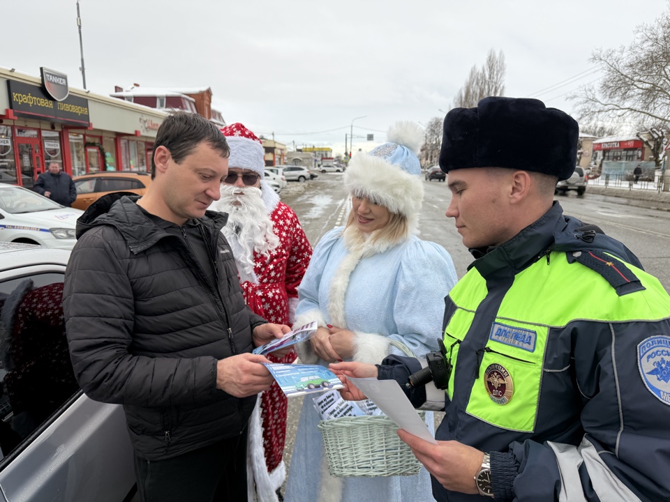 В рамках акции сотрудники Госавтоинспекции вместе с представителями местной автошколы «Кубань-Профи», Полицейским Дедом Морозом и Снегурочкой поздравили жителей и гостей Новокубанского района с предстоящими Новым годом и Рождеством Христовым.