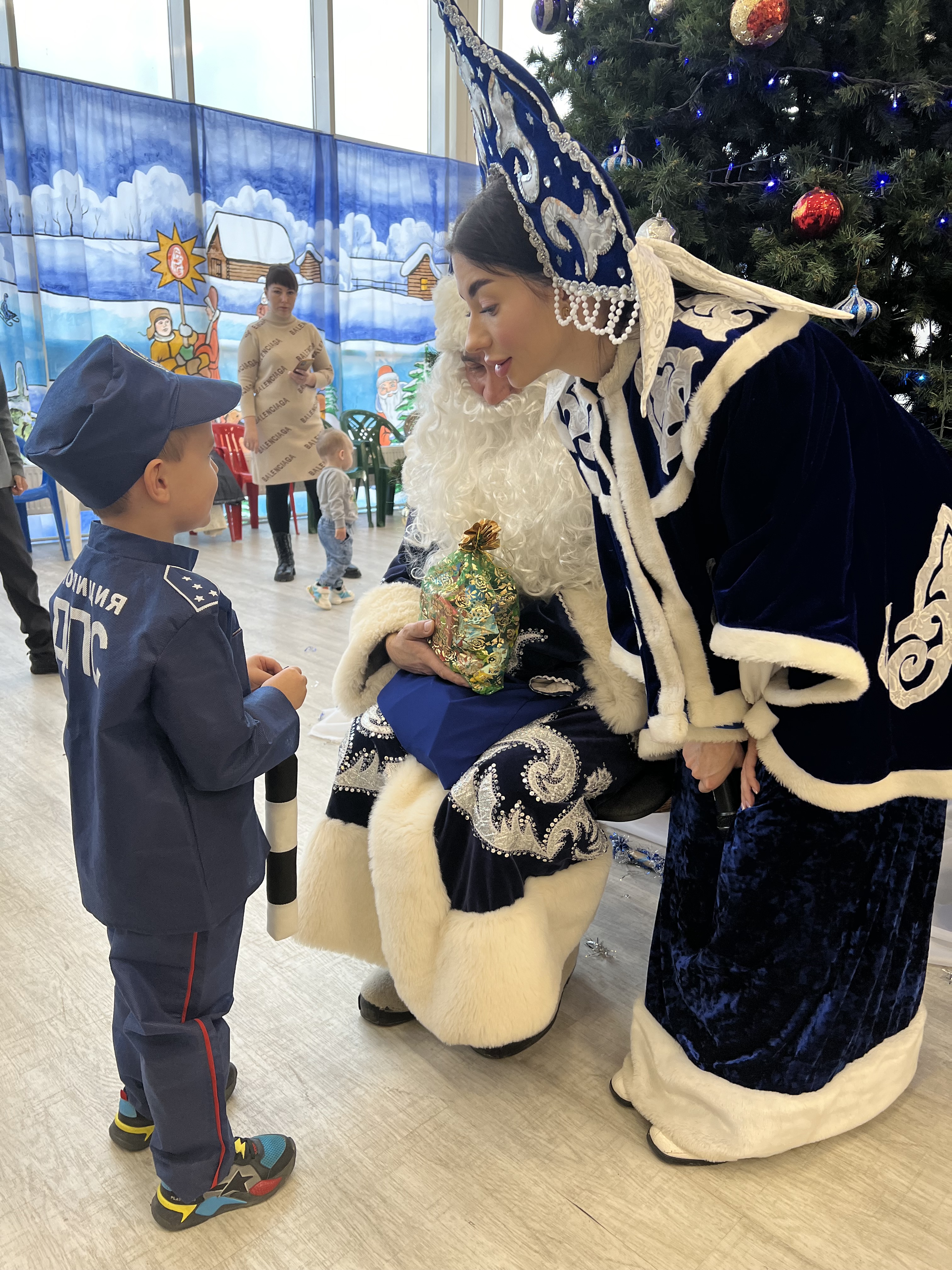 Сказочные герои поздравили ребят с Наступающим Новым годом, пели новогодние песни и водили хороводы. В завершении утренника представитель Общественного совета Маркозов Арамаис и полицейский Дед Мороз вручил детям игрушки и сладкие подарки.