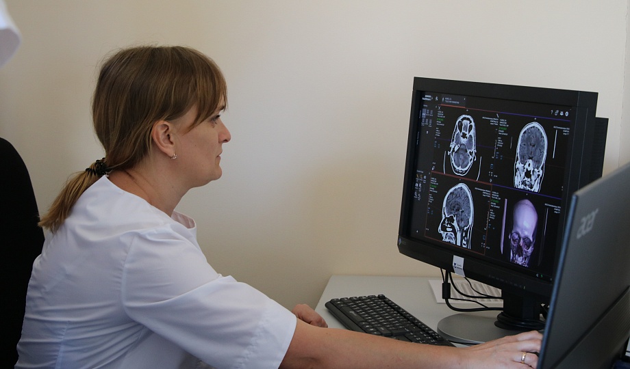 Затем посетили кабинет компьютерной томографии, где по достоинству оценили новый улучшенный аппарат. Напомним, что совсем недавно состоялось открытие томографа, который был установлен благодаря участию в региональной программе «Модернизация первичного звена здравоохранения» национального проекта «Здравоохранение».