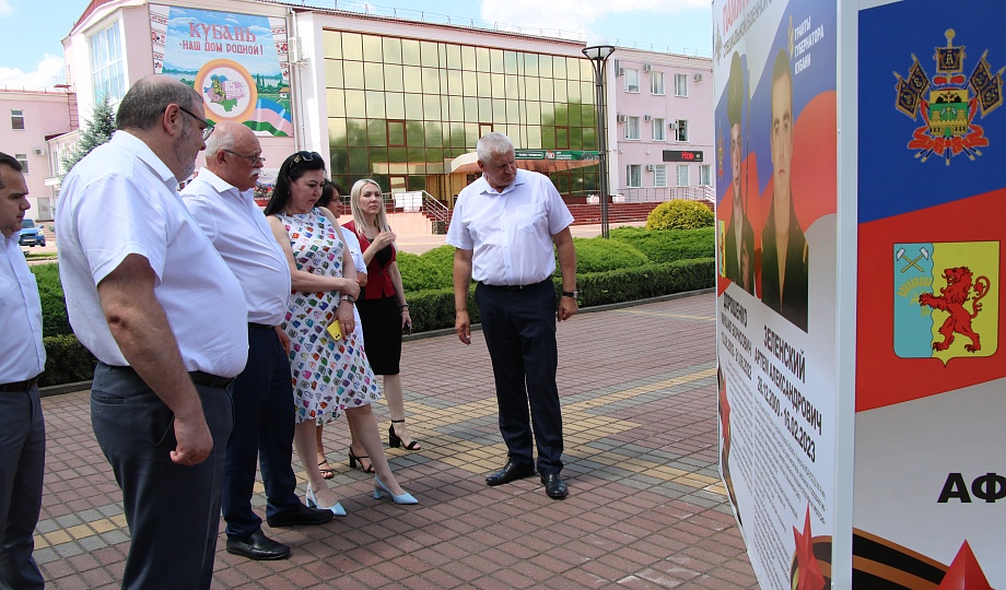 По окончании приема проследовали на главную площадь, расположенную перед «Новокубанским культурно-досуговым центром» им. Наумчиковой В.И. Там почтили память героев, погибших в СВО на Украине — их фото нанесены на кубы, установленные на «Аллее Героев».