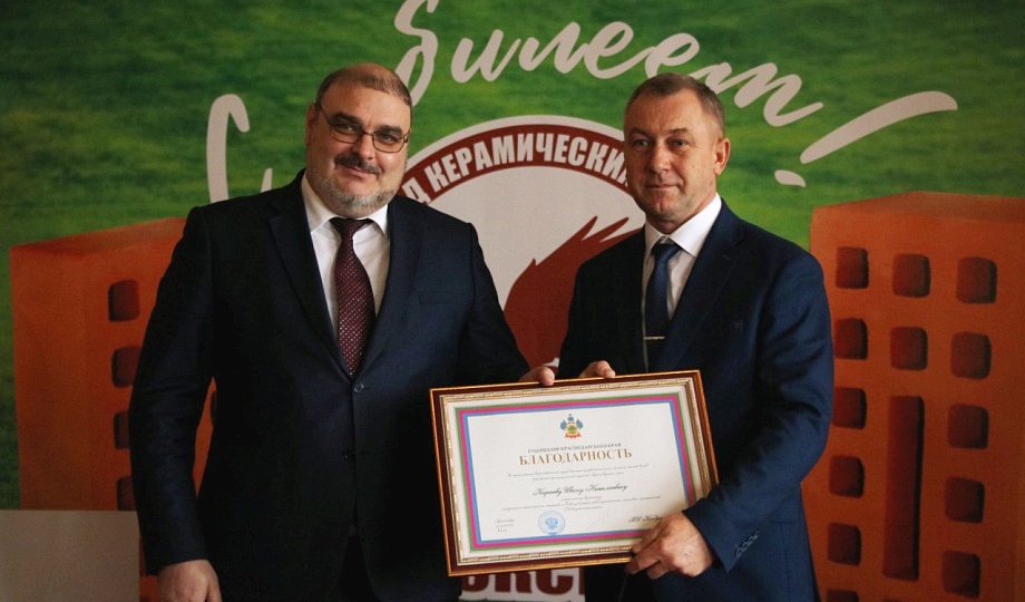 - Новокубанский кирпичный завод имеем богатую историю. В самые непростые времена предприятие продолжало свою работу. Оно было и, я уверен, будет важной составляющей экономики Новокубанского района, - сказал глава Новокубанского района Александр Гомодин и вручил генеральному директору ОАО «НЗКСМ» Ивану Николаевичу Караеву благодарность Губернатора Краснодарского края.