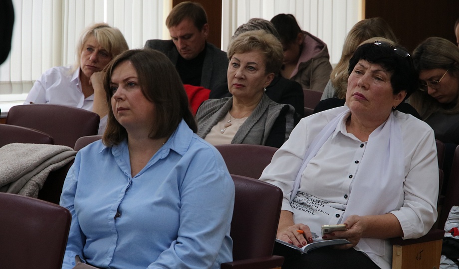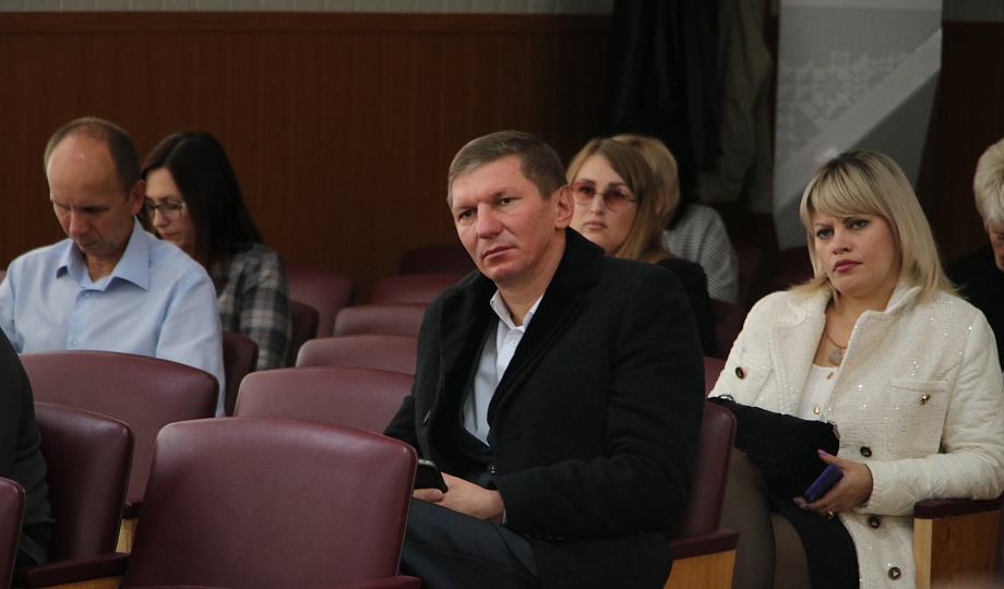 Заместитель главы муниципального образования Новокубанский район Дмитрий Шкареда рассказал присутствующим о том, как проходит сбор гуманитарной помощь для мобилизованных граждан от жителей Новокубанского района.