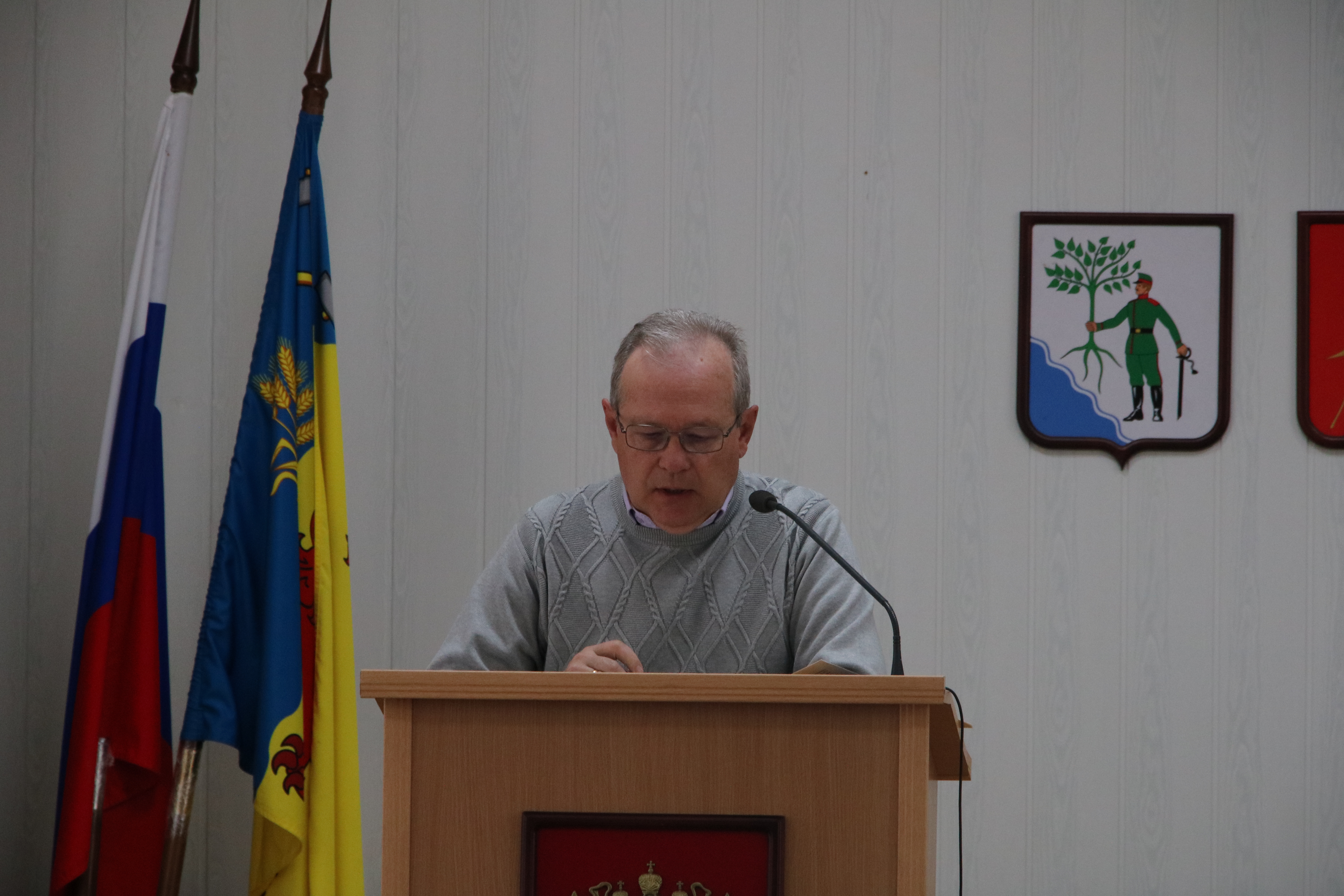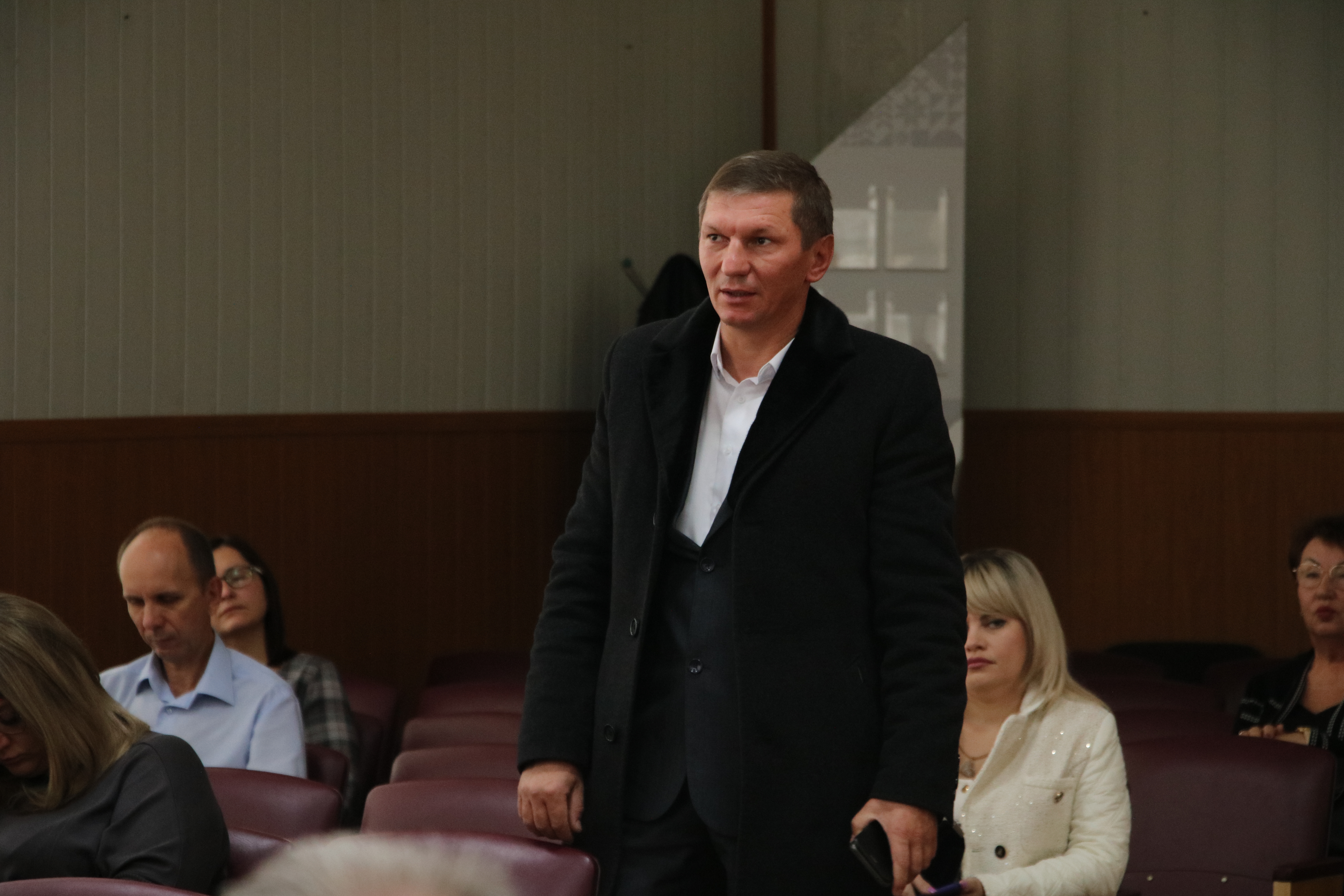 Заместитель главы муниципального образования Новокубанский район Дмитрий Шкареда рассказал присутствующим о том, как проходит сбор гуманитарной помощь для мобилизованных граждан от жителей Новокубанского района.