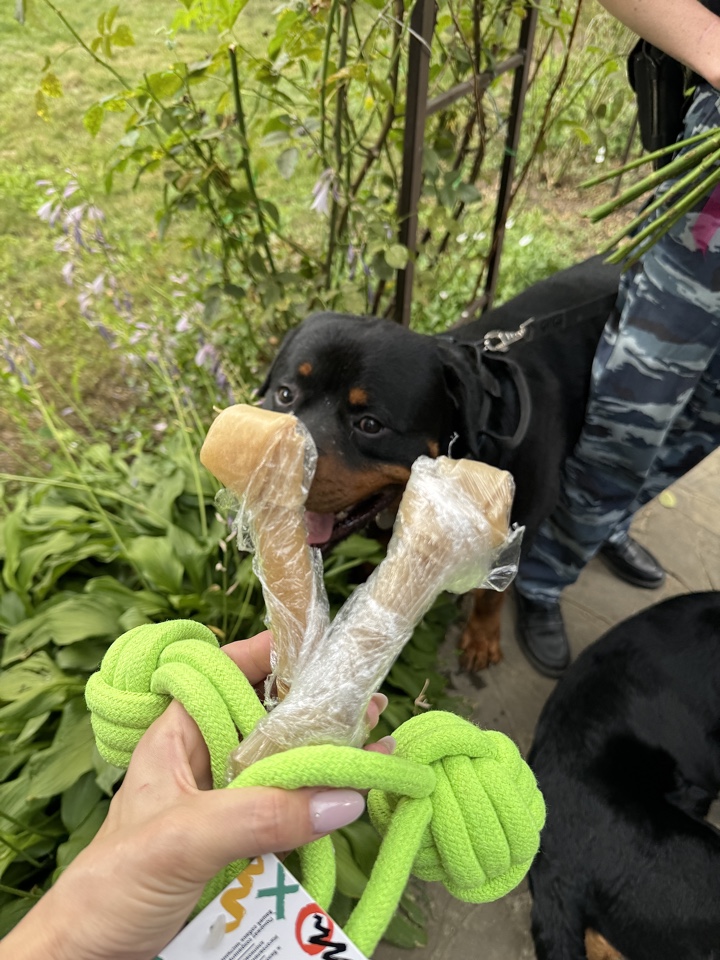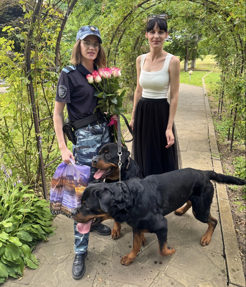 Представитель Общественного совета при Отделе МВД России по Новокубанскому району Лилия Матюшечко пришла с подарками для братьев ротвейлеров «Ориона» и «Бурбона».