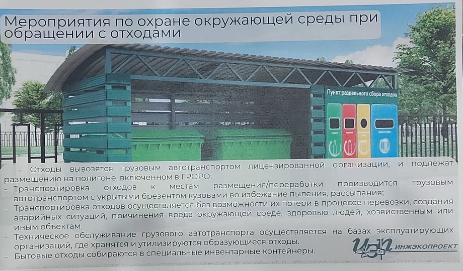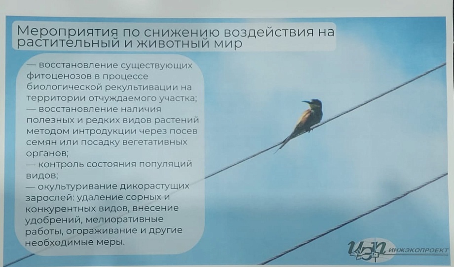 Рекультивация включает в себя боронование и дискование, которые являются основными источниками загрязнения атмосферы.  Также обсудили мероприятия по сохранению атмосферного воздуха, включая расчёты рассеивания загрязняющих веществ, а также меры по снижению шумового воздействия. Рассмотрели вопросы охраны окружающей среды при обращении с отходами, сохранения растительного и животного мира, защиты поверхностных и подземных вод. Проект предусматривает комплекс мероприятий в водохозяйственном и сельскохозяйственном направлениях.