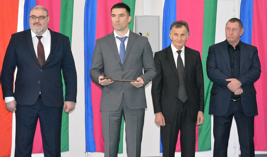 Далее в торжественной обстановке состоялась передача символического ключа от спортивного комплекса юным спортсменам Новокубанского района. Теперь этот ключ откроет двери в мир новых спортивных побед и свершений!