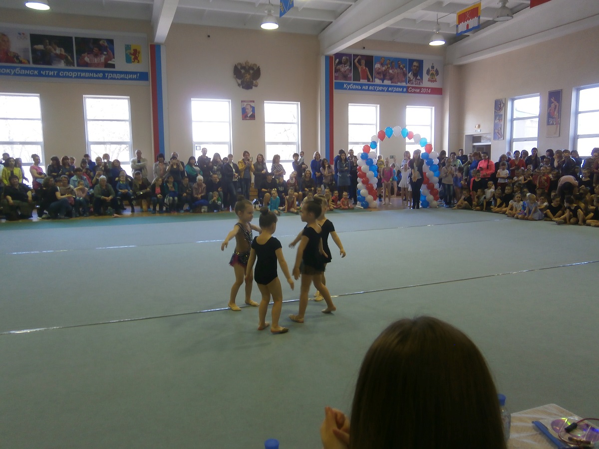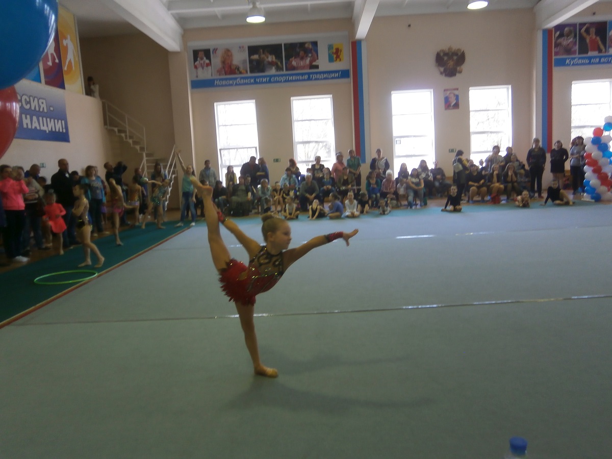 7 апреля в ДЮСШ «Олимп» прошло открытое первенство муниципального образования Новокубанский район по художественной гимнастике. В соревнованиях приняло участие более 130 гимнасток в возрасте от 5 до 11 лет, представляющие ДЮСШ «Олимп» города Новокубанска, Лабинский и Курганинский районы. Первенство открывал парад гимнасток, за которым следовало поднятие под сопровождение гимнов государственных флагов Российской Федерации и Краснодарского края.