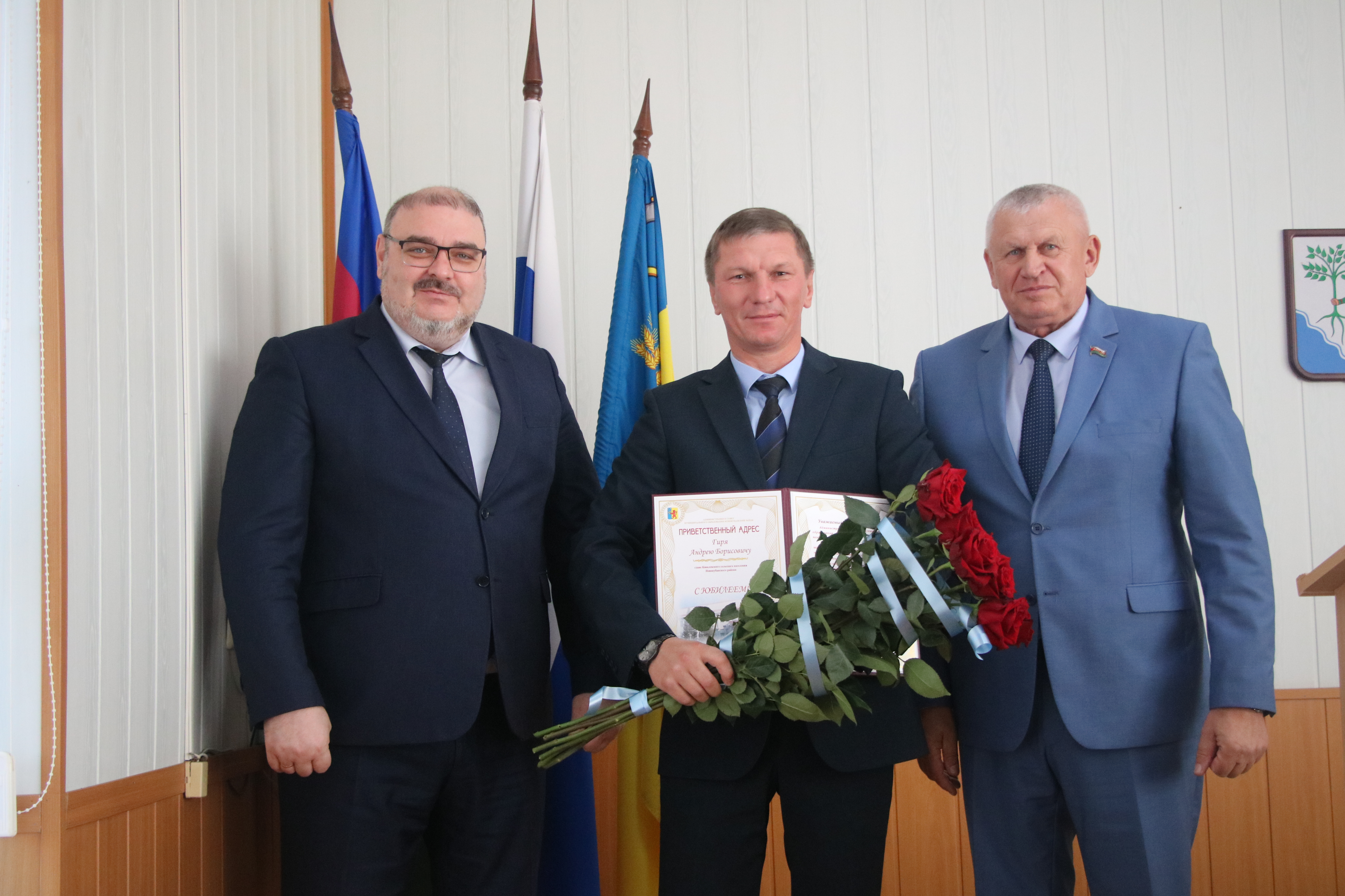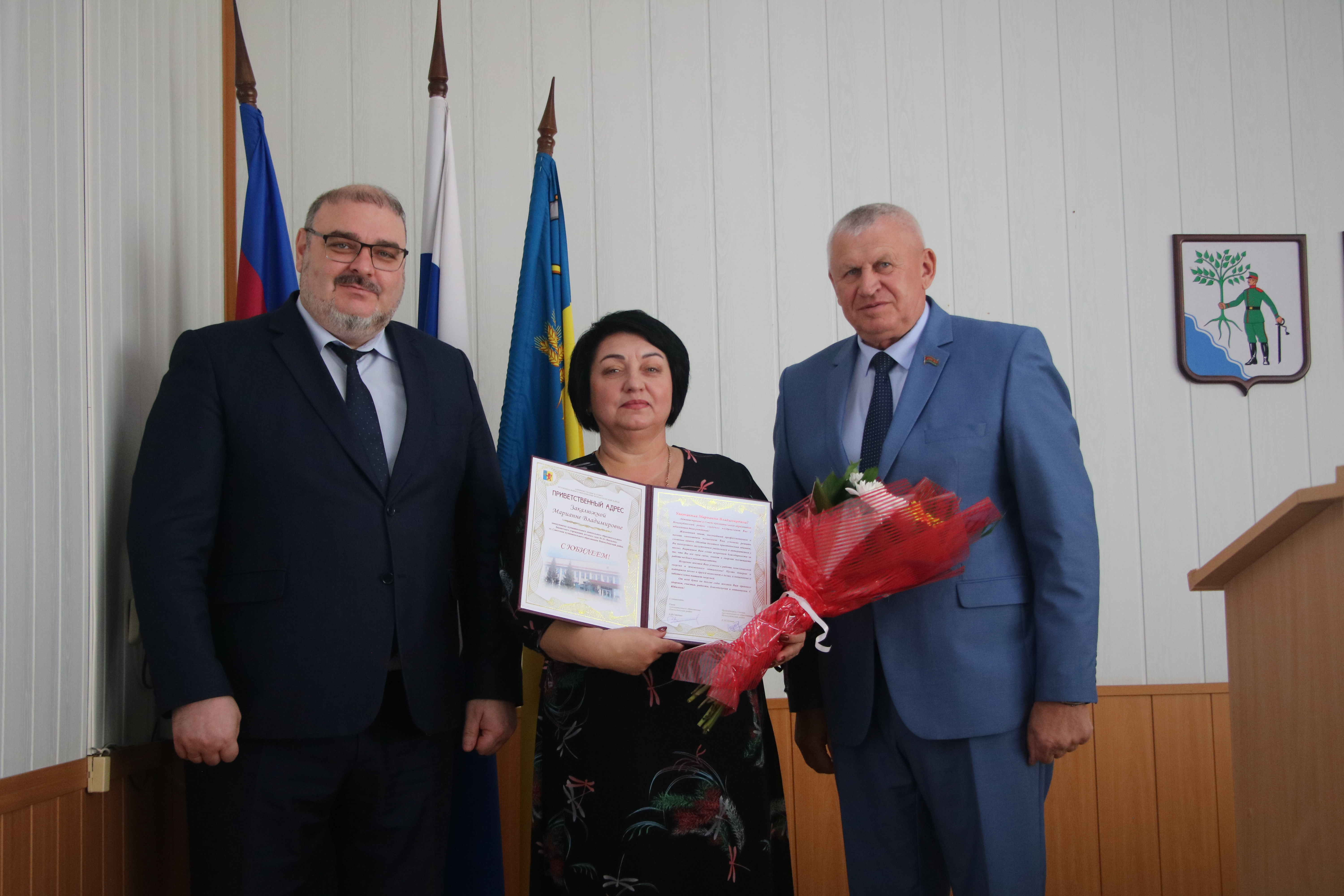 По окончании мероприятия торжественно поздравили с юбилейным днем рождения Андрея Гиря, главу Ковалевского сельского поселения и Марианну Закалюжную, заведующего МДОБУ № 26 «Василек» ст. Советской.
